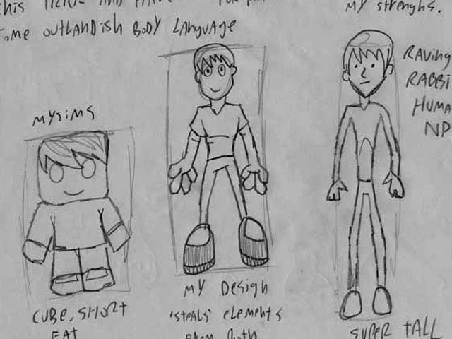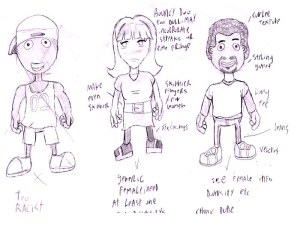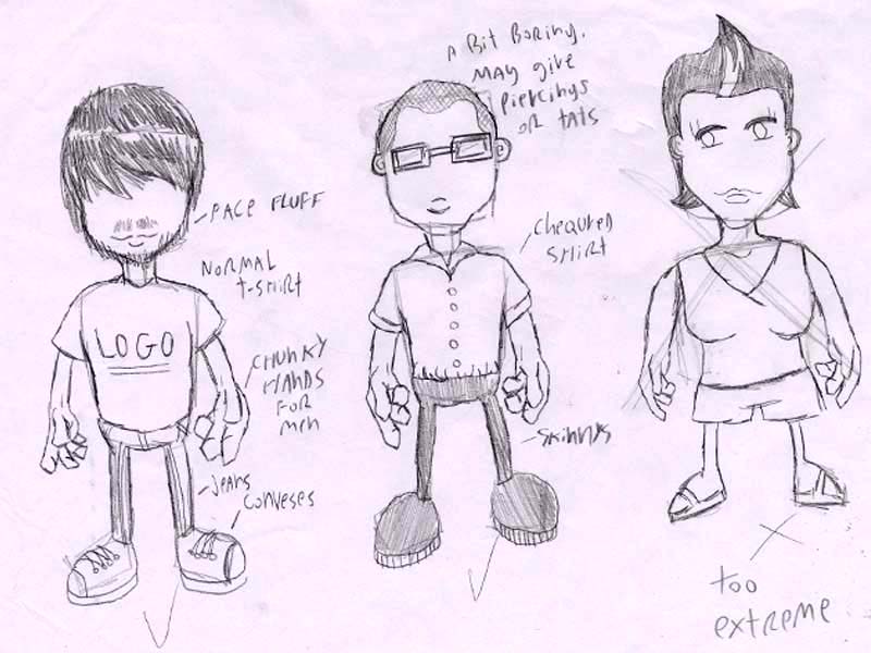I was trying to encompass a `student` feel for my characters. so i thought to myself “what defines a student? how can you tell when you’re looking at one?” I had a huge list of words lying around that I cant find anymore. it had things like `stupid haircuts,shoulder bags,chequered shirts` to be fair,this was just stereotypes from myself. but i am a student so i guess it applies.