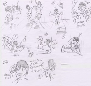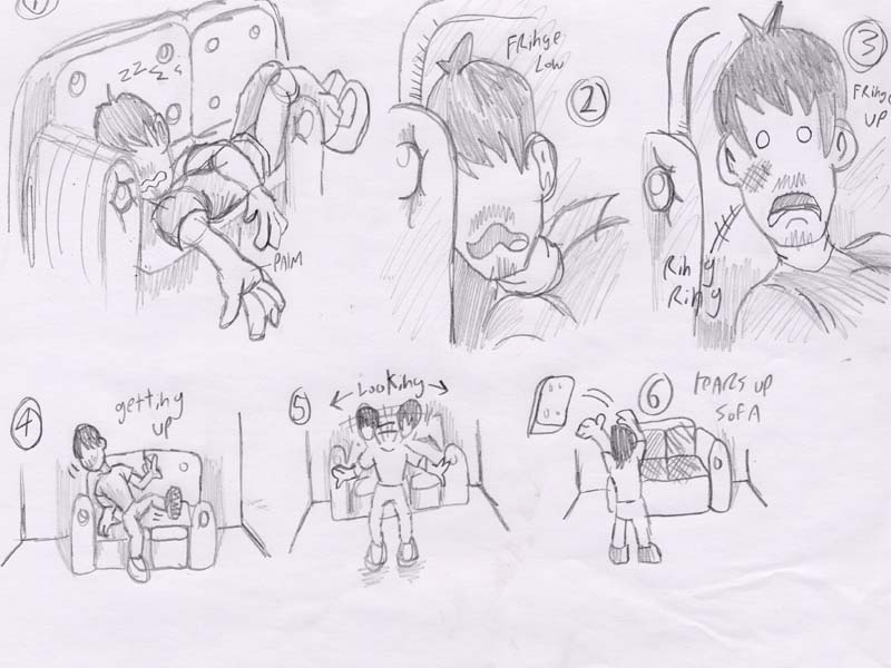 hope it made you laugh 😛 but im not happy enough with the final result so I will go back and refine it someday,but for the time being. it`s good enough for my upcoming pitch and crit. I changed a few ideas like removing the `joy` expression from the storyboard as it felt out-of-place in his mad rush. also the caller selling health insurance was a nice touch of irony. good thing about using the flipnote studio is that i can make a rough version of sound for the final animation. that and a still,paper storyboard cant help with timing the same way an actual animation can. thanks to my flipnote version I know for sure that my animation is long enough to meet the requirement 🙂 (50 freaking seconds! quite meaty)