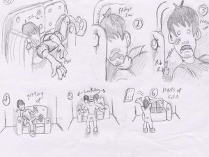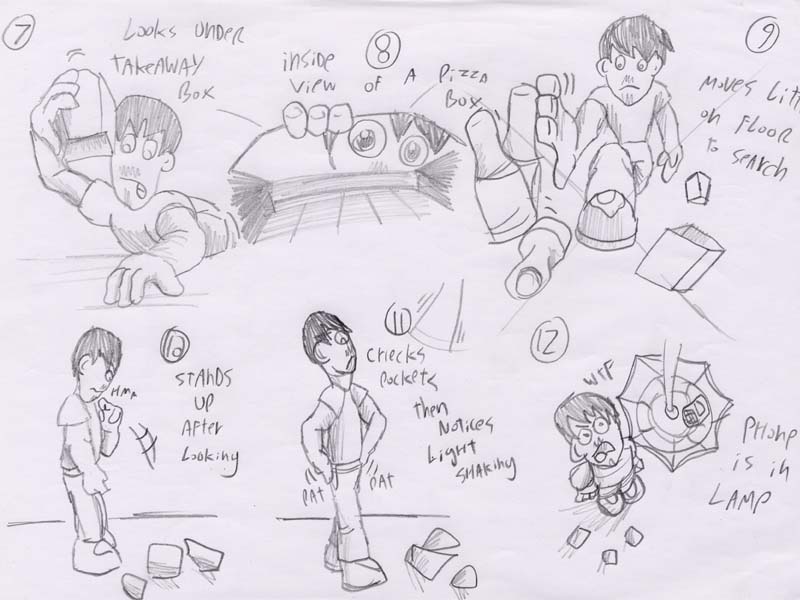 the style translates pretty well to 3D so im happy with that 😀 as for the actual animation and story. ive only just recently got on top of that. other things have been keeping me distracted from it. but now i have the storyboard drawings done and a rough 2D animation made in the brilliant flipnote studio. here’s the paper version.