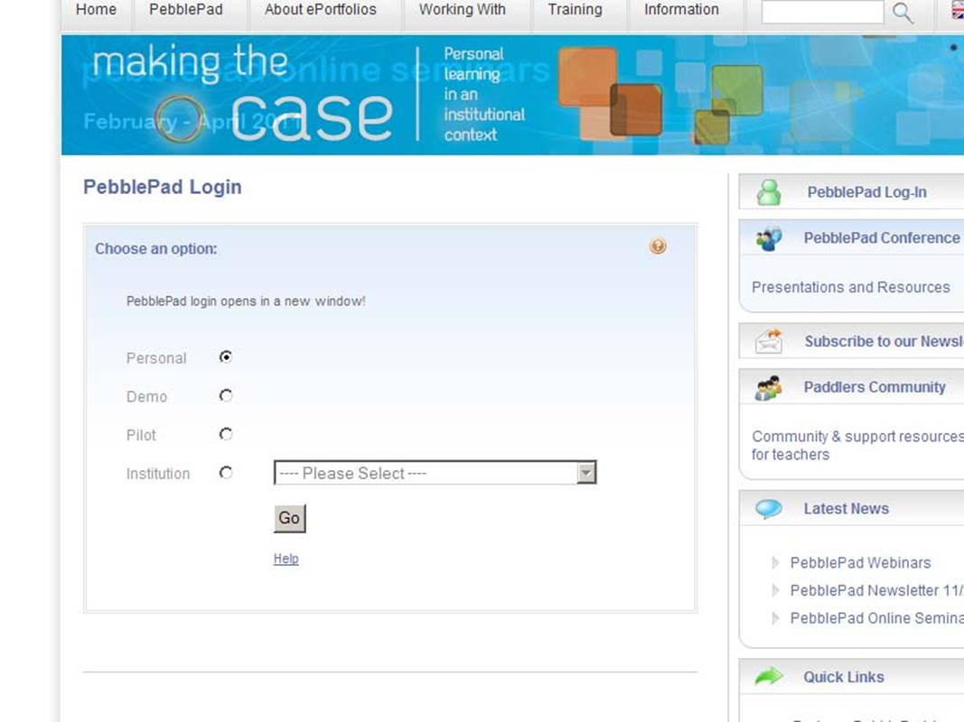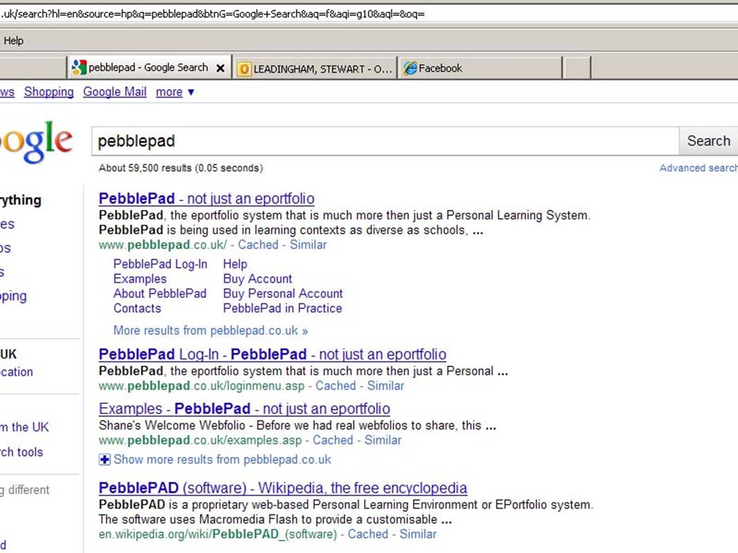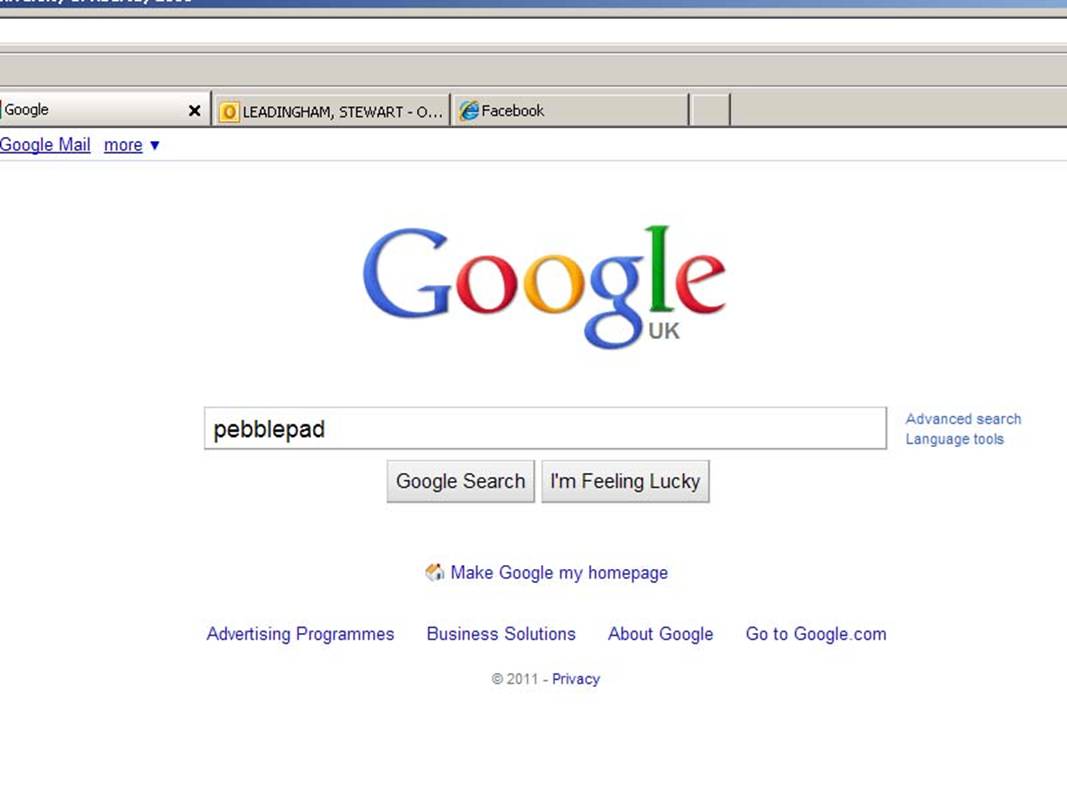 I tried entering pebblepad.com into internet explorers address bar but it has a nasty habit of taking to the `bing` search page. So I just google pebblepad to get there instead.