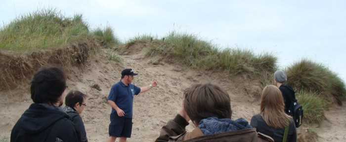 here is all of us looking at the exhilarating sand. looks closer and you can see the wardens epic sideburns.