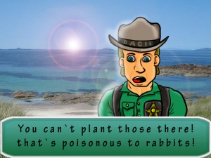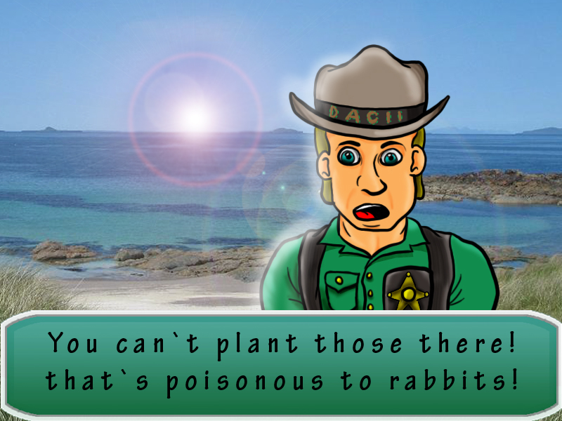 for actually guiding the player and to act as a tutorial of sorts, we proposed a beach warden who would appear on the top screen alongside a text box in a very phoenix wright style fashion.