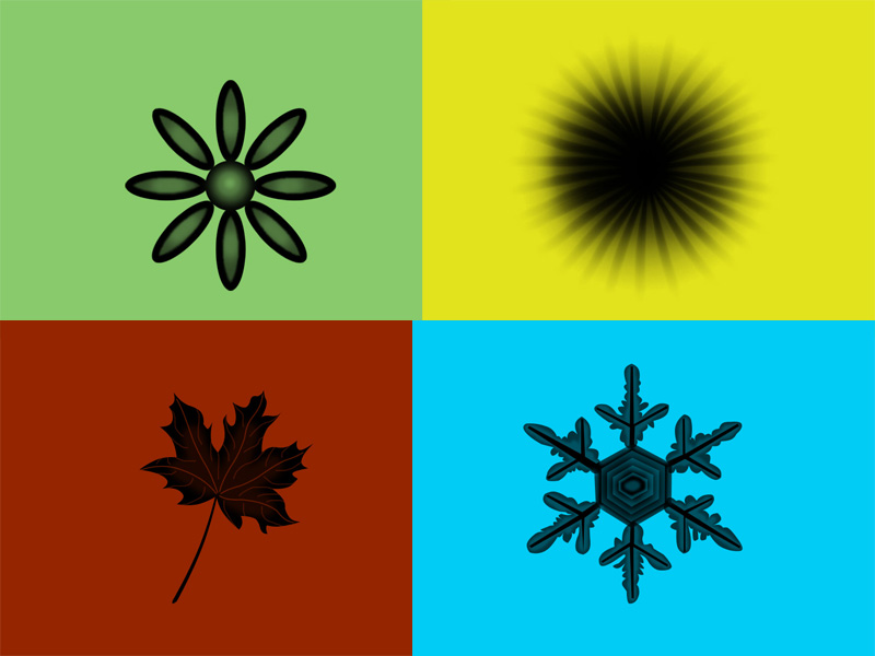 for example, in the blue winter background the snowflakes would fall down vertically, and in the yellow summer the pollen would rise upwards. autumn and spring leaves/petals would move horizontally so each season was different.