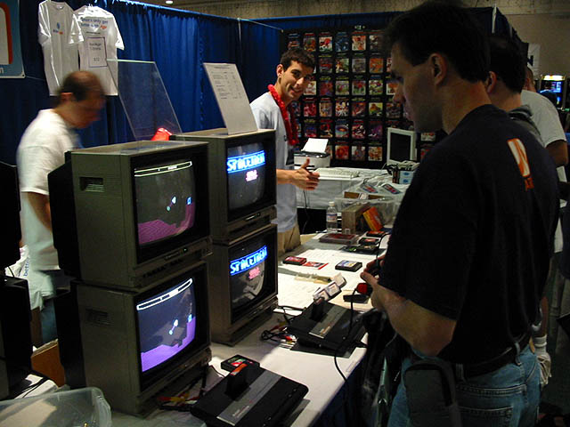 their show floor includes hundreds of unique arcade machines and classic game consoles. they also thankfully showcase brand new games. usually homebrew games which are actually physically manufactured onto cart form and work on the respective consoles. they`ve had games debut for the Atari 2600 and even the Gameboy advance. (speaking of which, the event has a ton of sponsorships from Atari and Atari related companies)