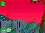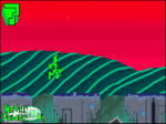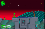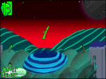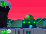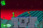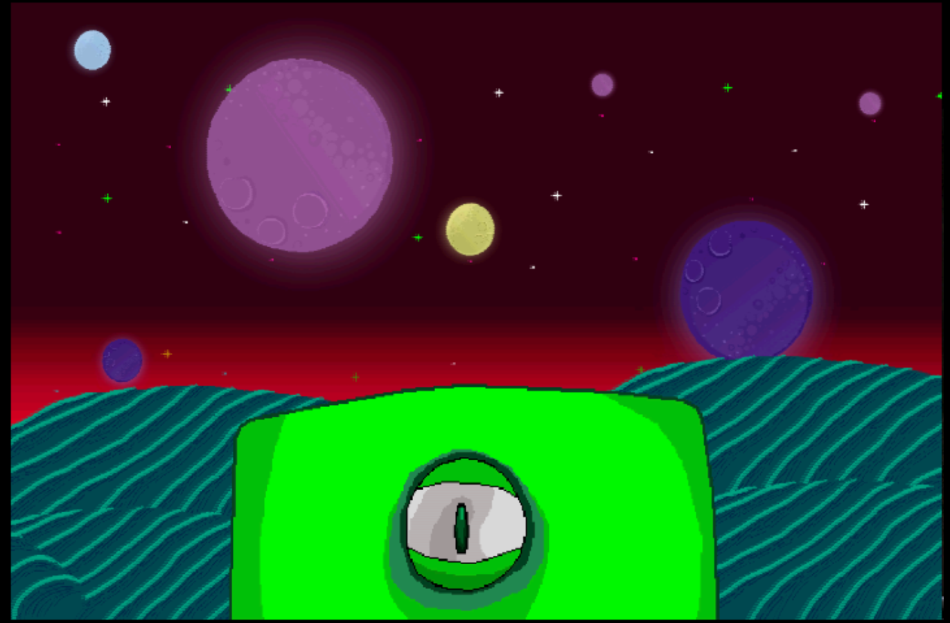 him making a safe landing. and the moons now in the background. again, had it there to decorate the sky. I wish I had put more moons in the background during the main game to further emphasize the `alien` vibe. maybe three of them all clumped together and exotic colours. alas technical restrictions limited it to just two. there`s some cool hi res glow effects behind the scenes on them however. you can spy it in the ending sequence.