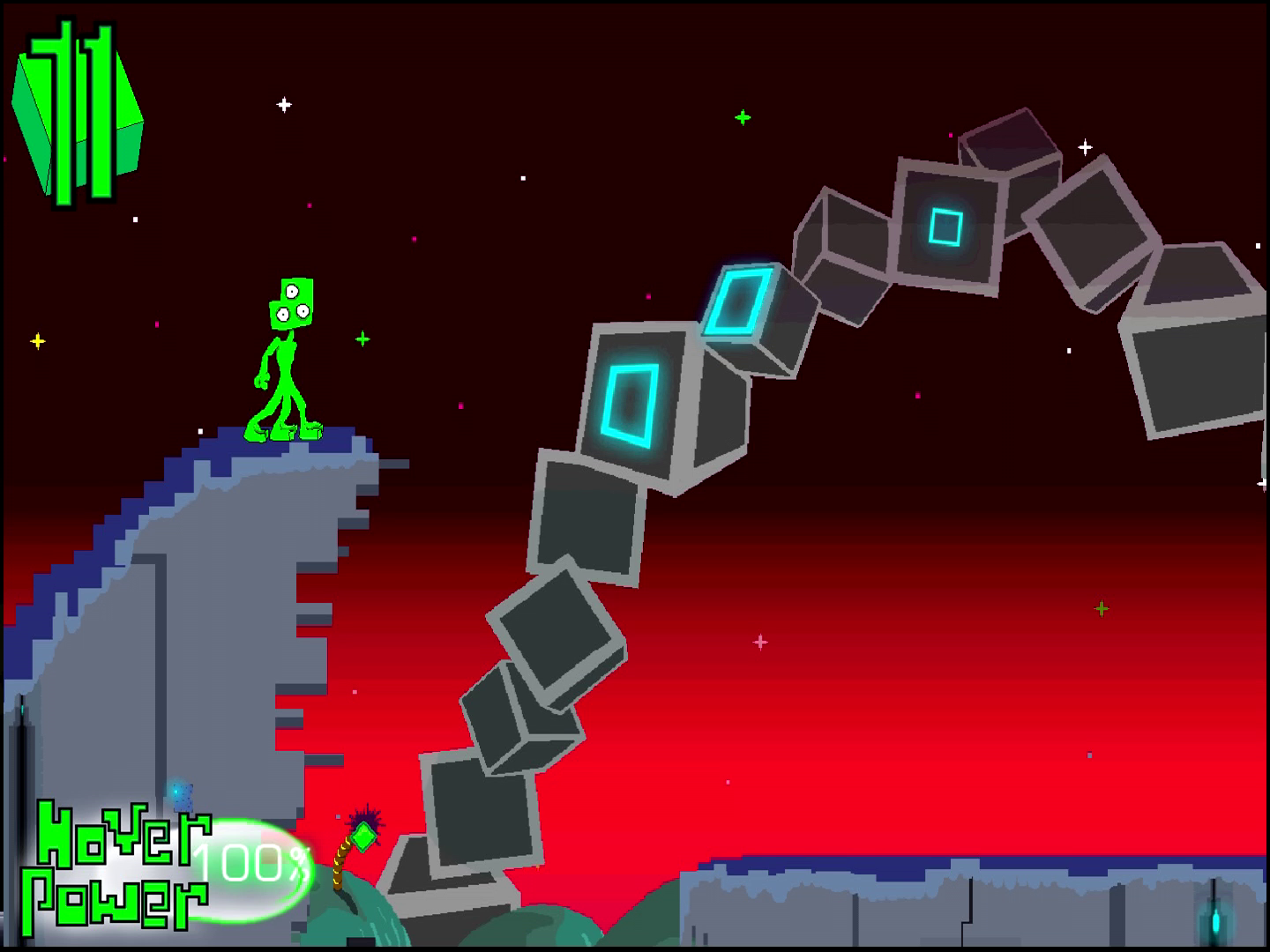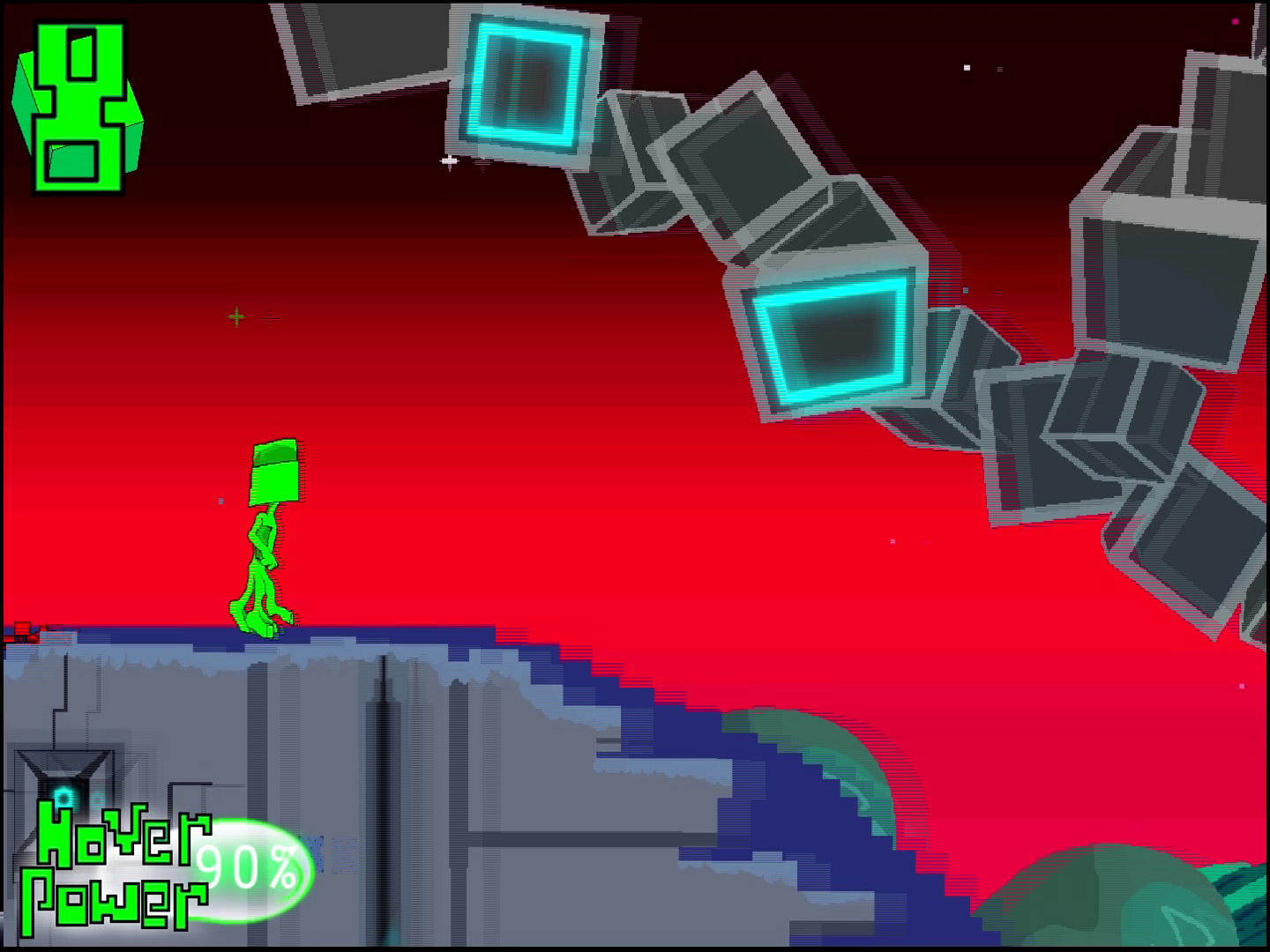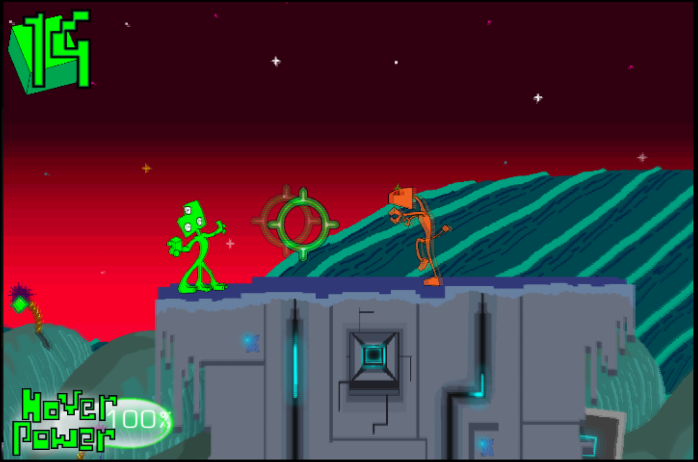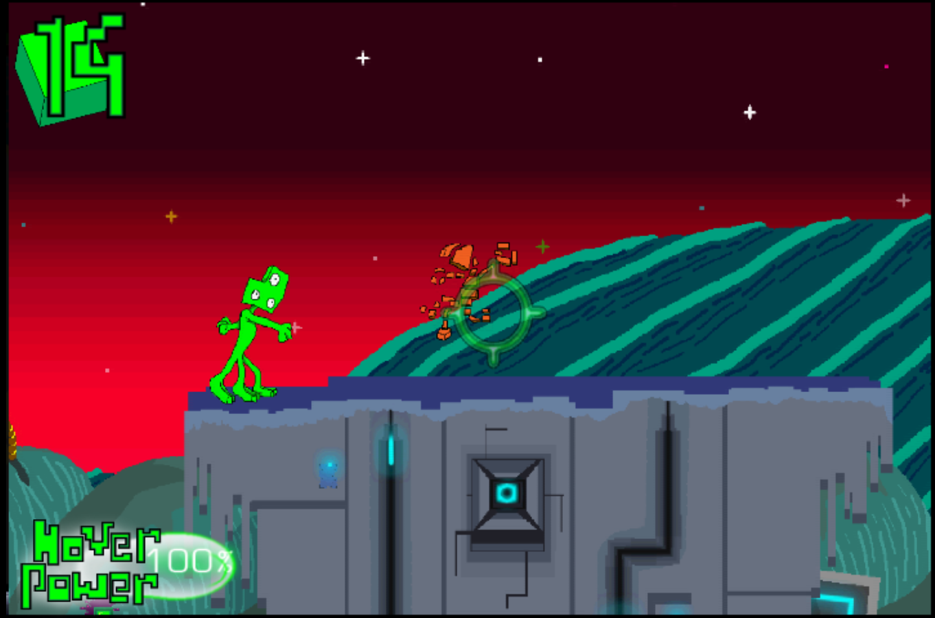 he takes a step back and deals with the threat. I think if this was an actual game it would be quite difficult. there`s the factor of missing shots severely damaging your bit count and the ever decreasing hover ability. that and once you reach zero parts to rip off, a single hit will finish Tixel off.