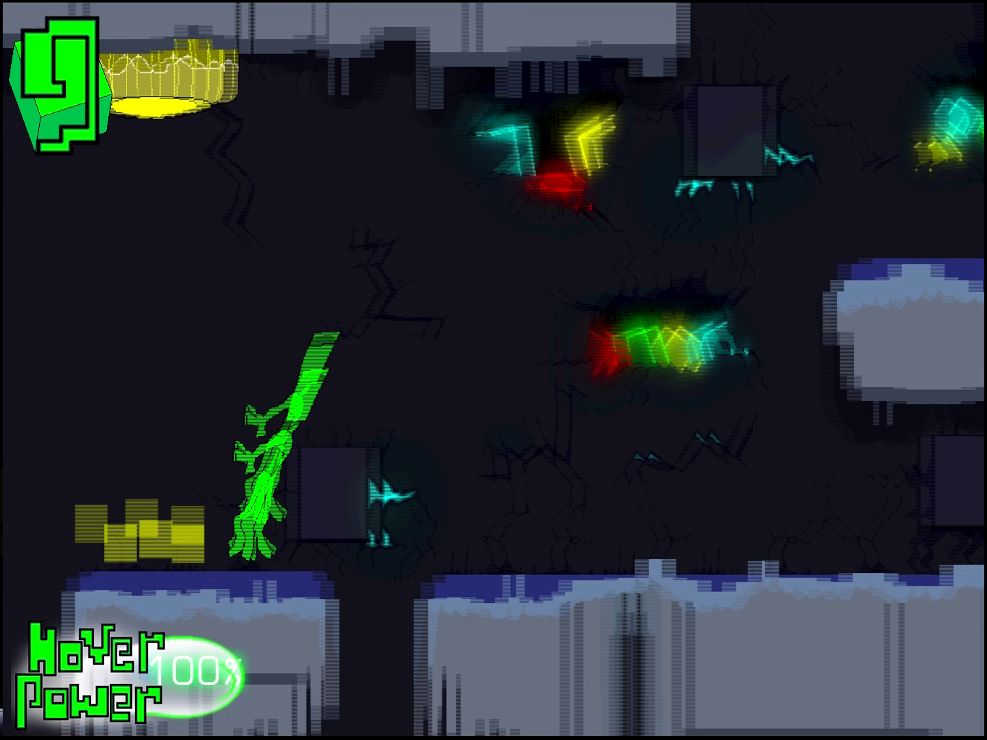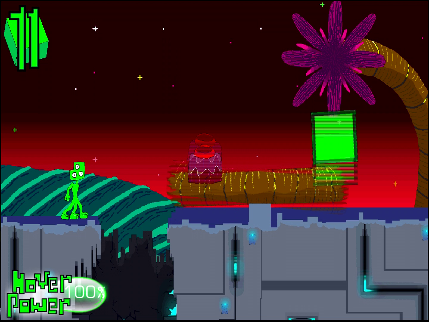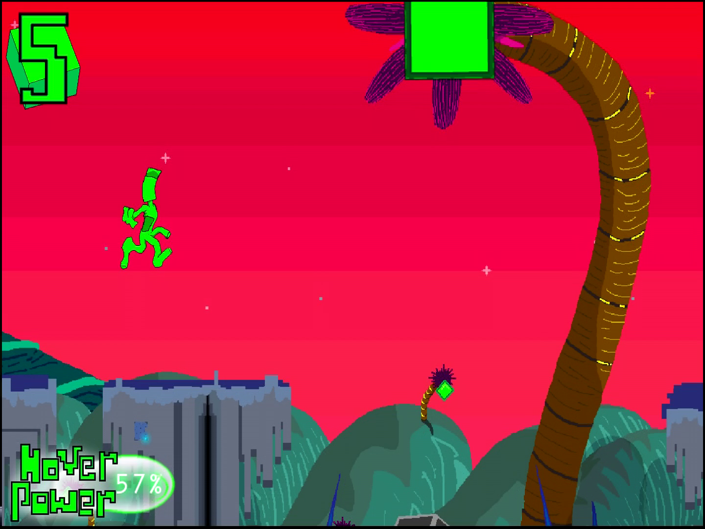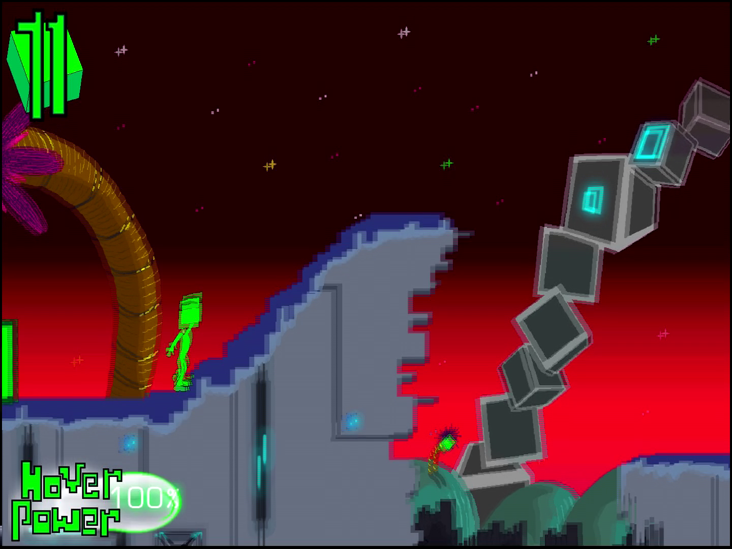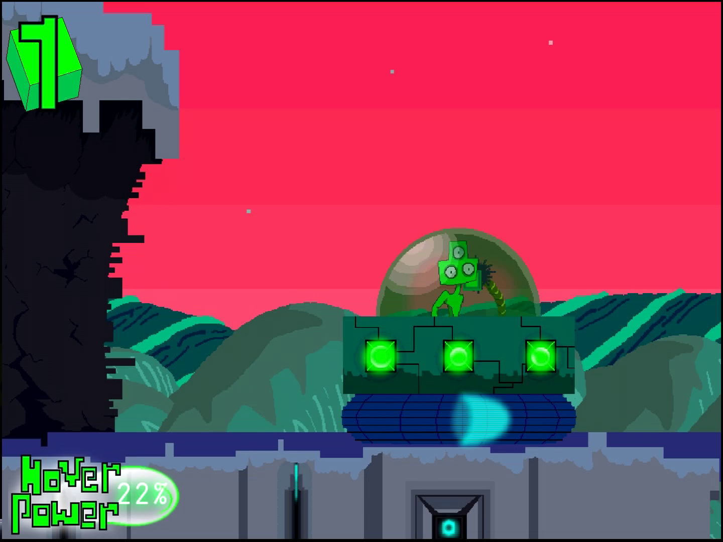 and try as he does, he doesn’t quite clear it and ends up respawning on the platform.his hover power is decreasing so there’s no point trying again. and again, I wish I had some more background elements here. the reds are fading together.