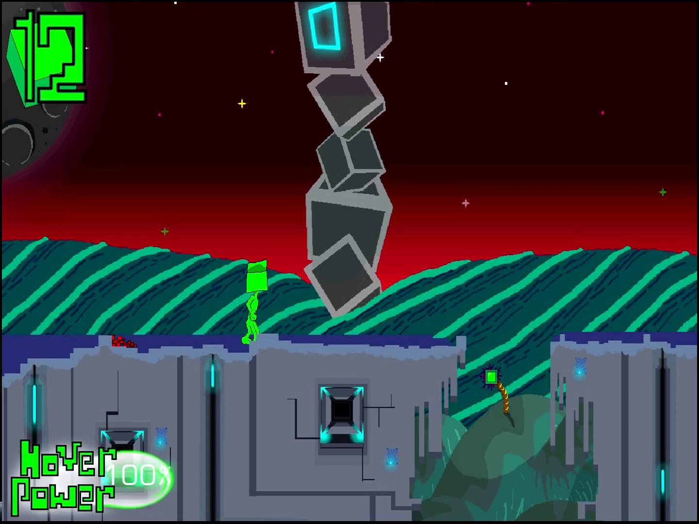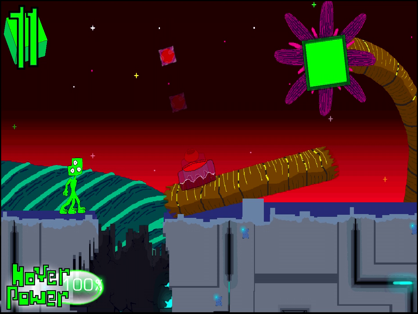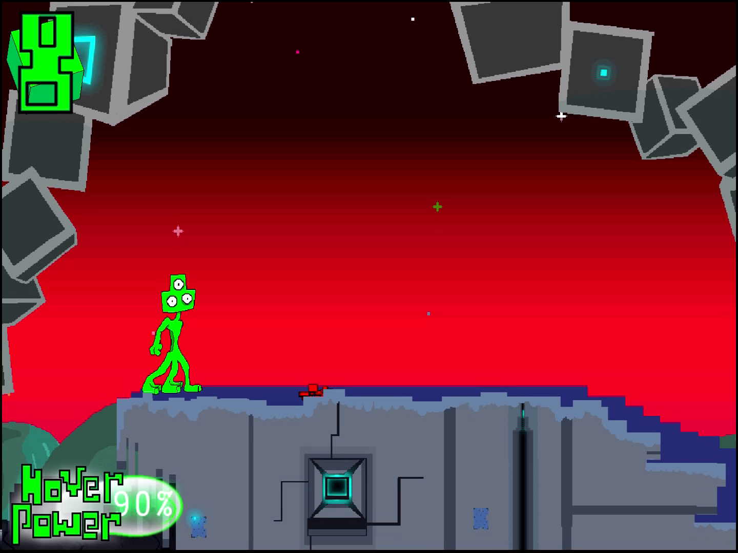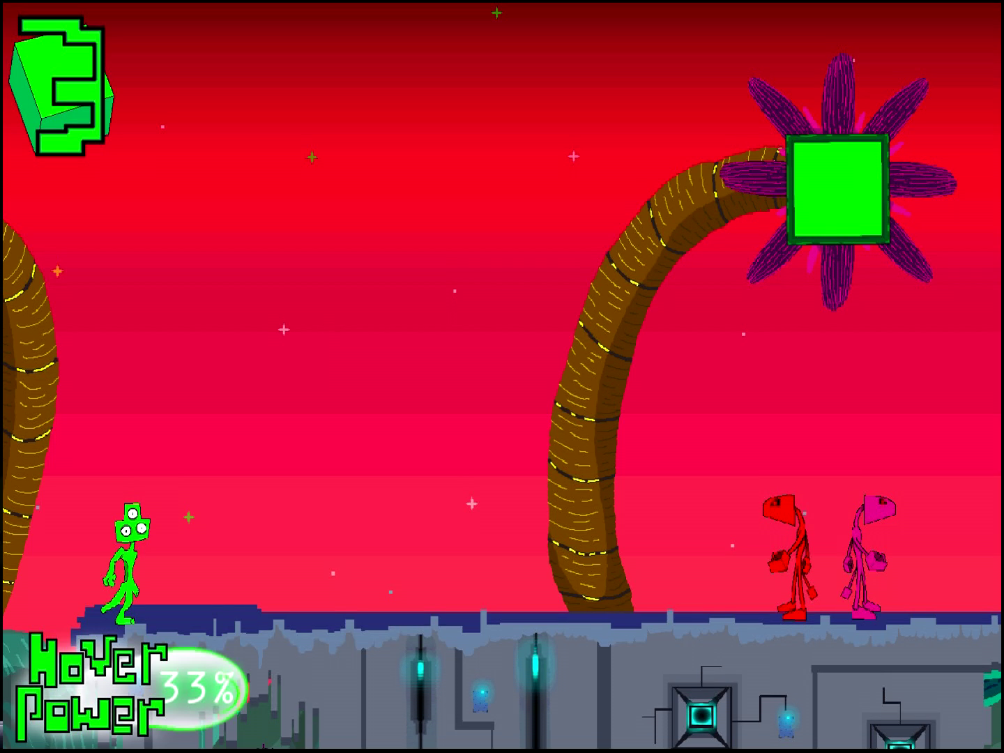 and try as he does, he doesn’t quite clear it and ends up respawning on the platform.his hover power is decreasing so there’s no point trying again. and again, I wish I had some more background elements here. the reds are fading together.