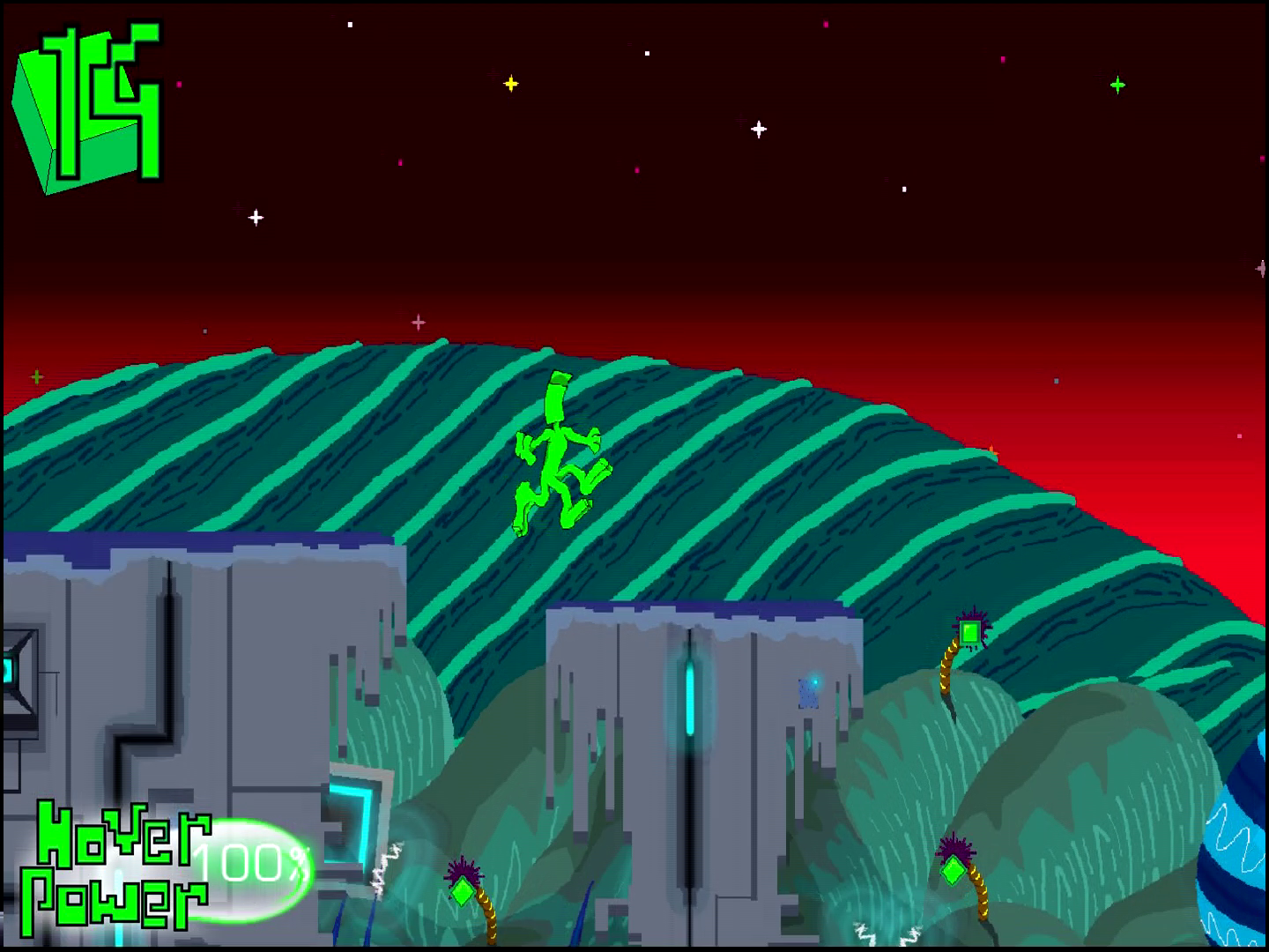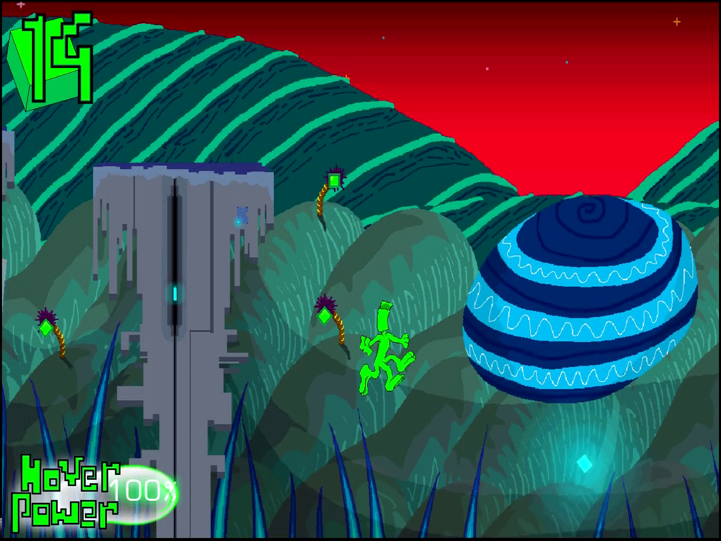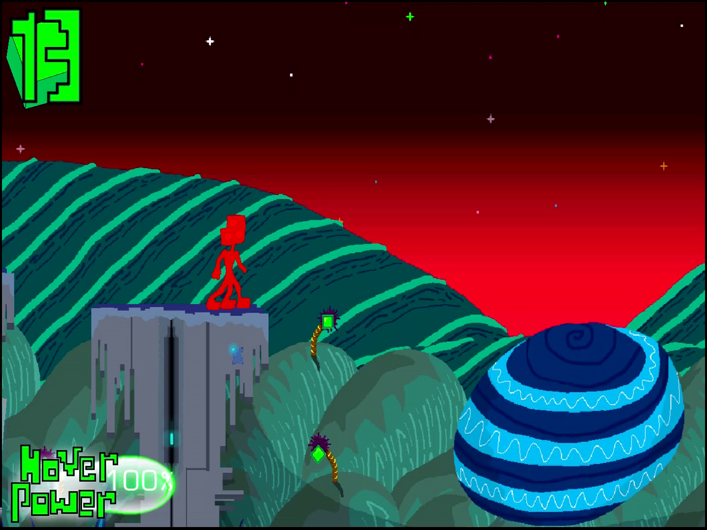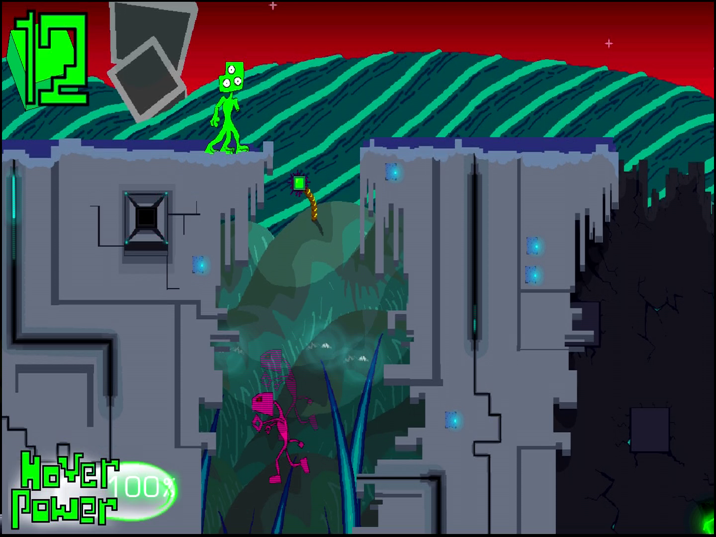 and try as he does, he doesn’t quite clear it and ends up respawning on the platform.his hover power is decreasing so there’s no point trying again. and again, I wish I had some more background elements here. the reds are fading together.