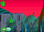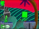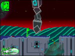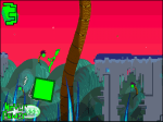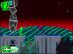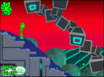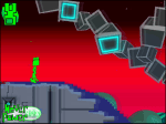 not much to say here. clawguy defeated, moving on. I`ll give one of the backgrounds a mention. the darker green one with the lime lines. there`s about 3 of those, and I just overlayed them to *try* to give the look of a flowing hills. where the blocks are settled is where two hills are connecting so that fit in quite nicely. looking back, i`d liked to stick some smaller grey cubes on them to give the impression of distance.