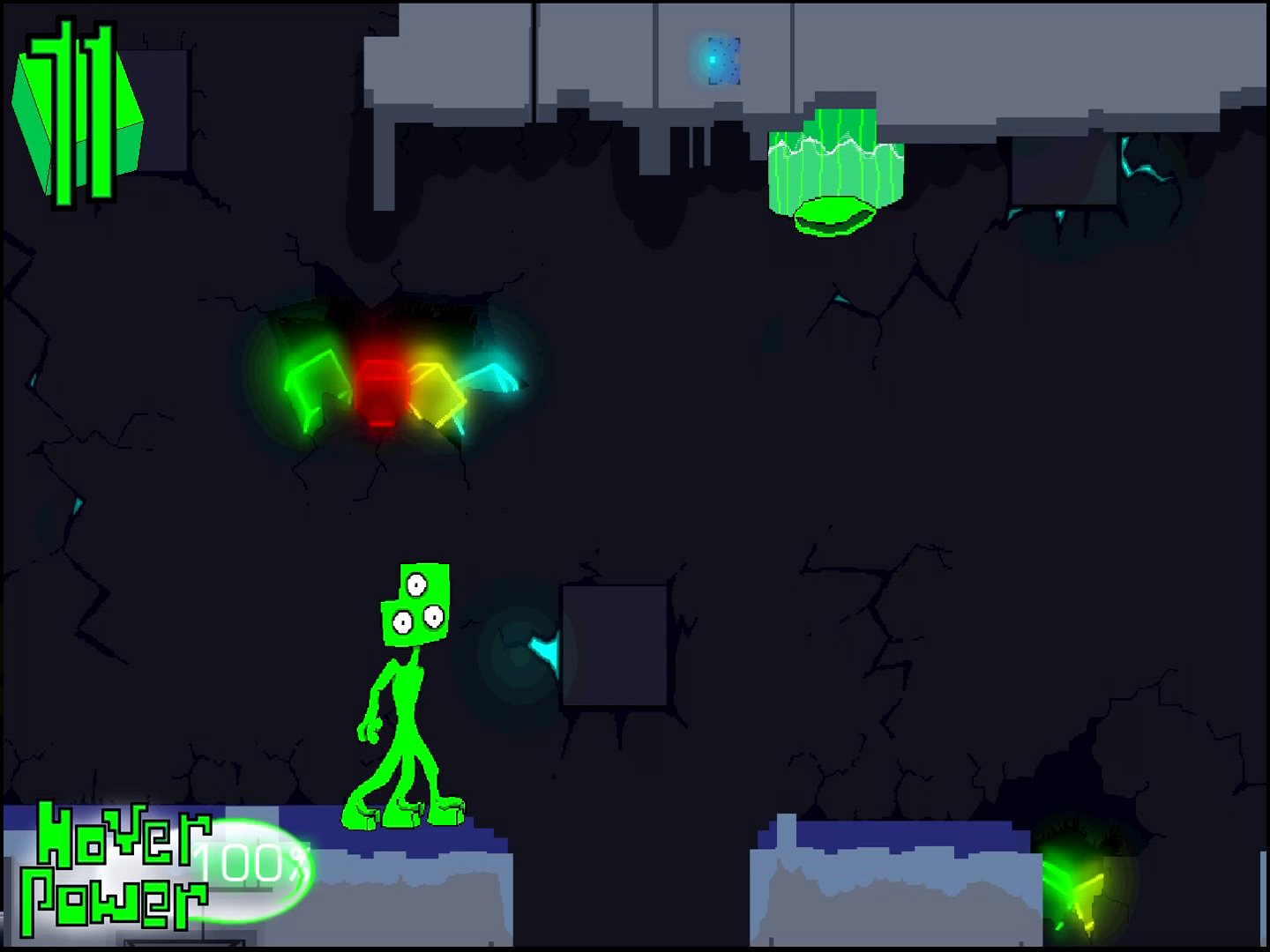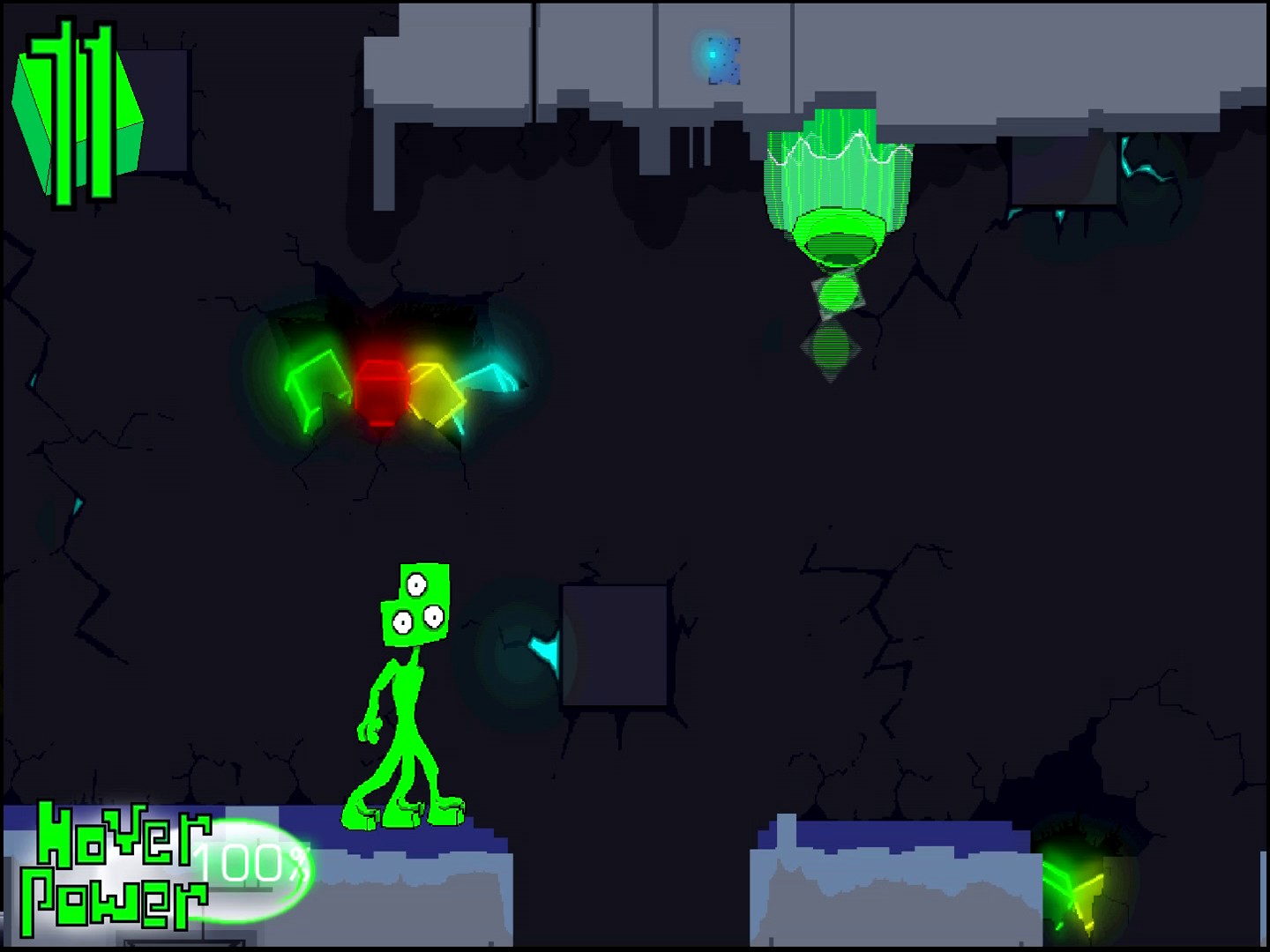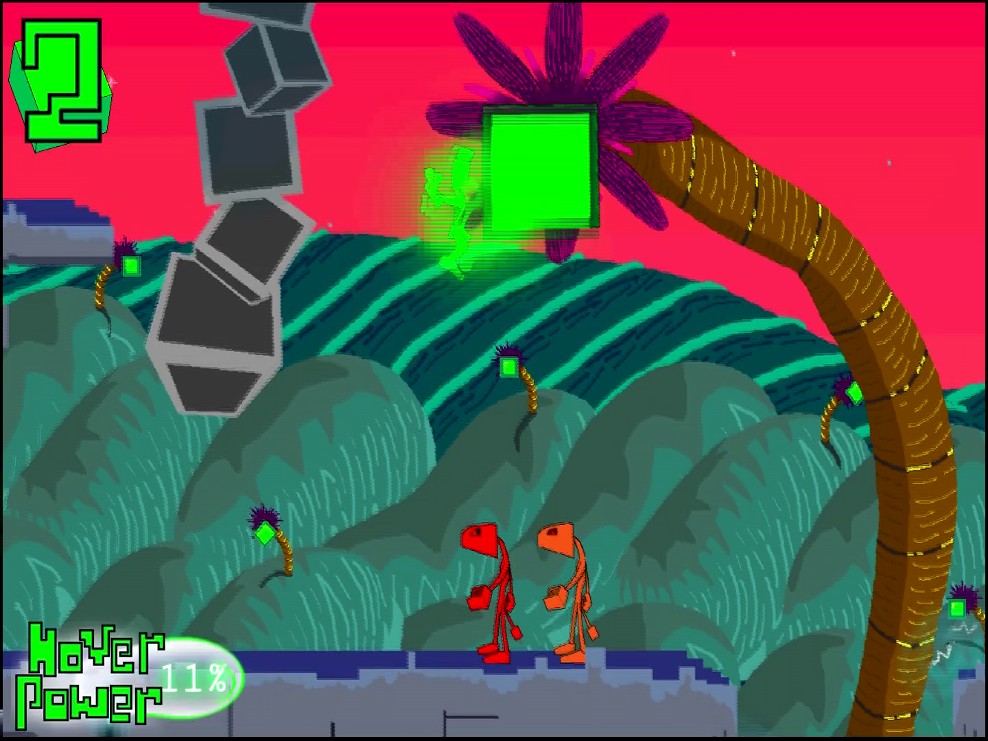 here he is demonstrating his hover jump. I was inspired by mario`s tanooki tail float, I even used the same sound effect for a bit. but it got irritating fast.