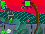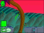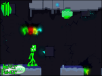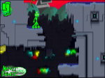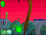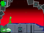 spitter attack smashes. Tixel continues upwards. and I`ve just noticed the blue laser on the right is out-of-place. whoops. oh well since I`ve brought it up I may as well talk about them. I did about 15 variations of them and placed and animated them all by hand to fit in the black gaps I did on the foreground. I tried to give them a `pulsing` yet `travvelling` motion like blood flowing from a heartbeat. I did a lot of `pulsing` things, but I wanted to give the planet a sense of `life` that and to liven the scene up. the game moves fairly slow so i thought i should have some additional visual stimuli aside from the gameplay.