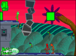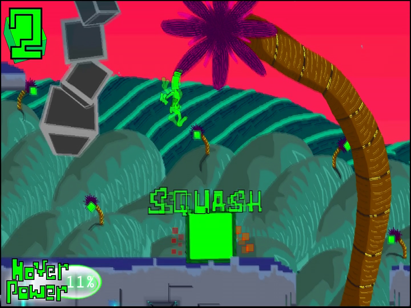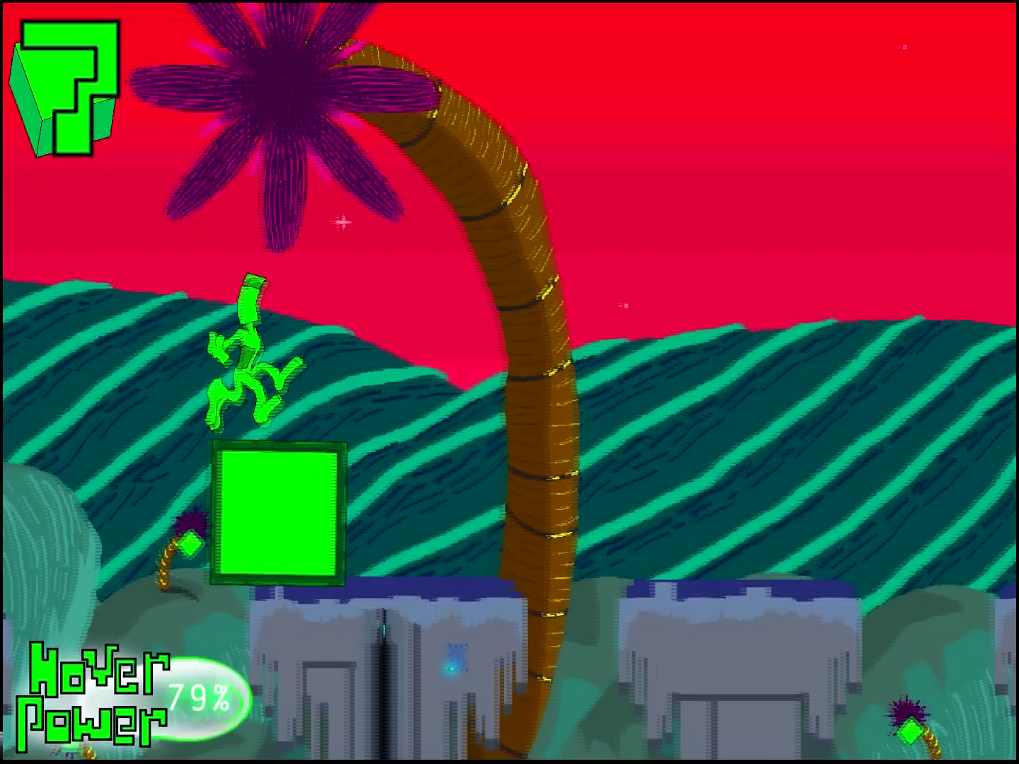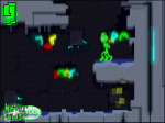 that cube in the bottom left lies on the closest background element (except from the floors and cave walls) which is the light green hills, I placed lots of cubes on these hills to break up the monotony and even put some electric pulse like effects on them. (similar to the ones seen in the foreground) just to take the edge of the flat shading and to liven things up a bit. the lighting effects are very high frame and a larger resolution. since these have a lot of alpha space, they didn’t take up too much memory. if something like the environments had been high res, the game would not have run as smoothly.