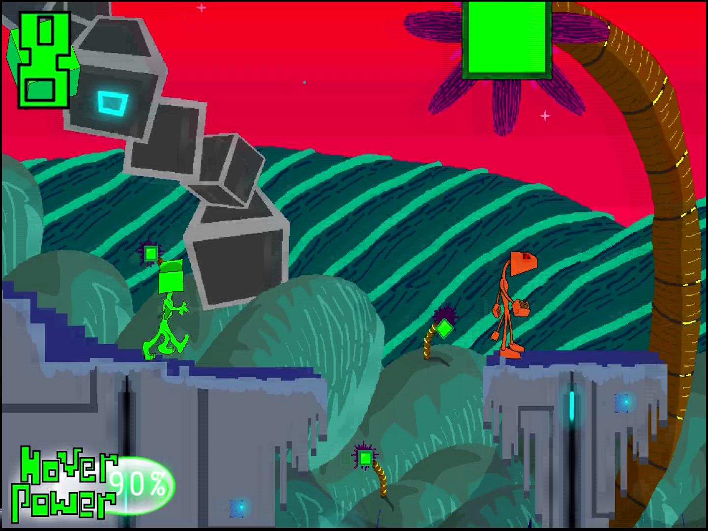 enemy defeated. at the bottom left, the hover indicator has dropped to 90%. that`s because Tixel just threw a toe. now his hover jump wont be quite as effective.