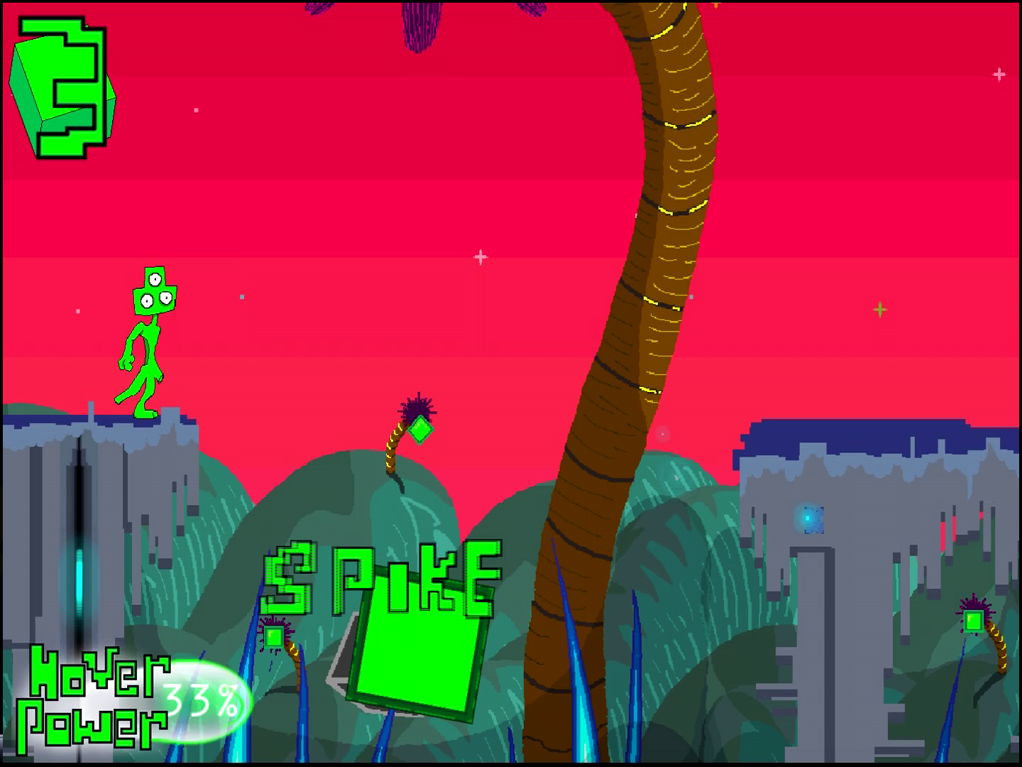 the treebox gets impaled on a spike. creating safe ground to get across.I imagine if the player doesn’t have any bits left by this point, then the box could simply fall by itself after a while. but this obviously detract from the time score at the end of the level, and there wouldn’t be a “SPIKE” bonus.