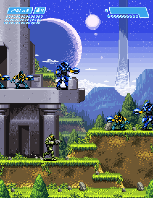 whenever I see concepts like this, it makes me sad that they aren’t real. halo hallmarks like vehicles, huge landscapes and advanced a.i could theoretically exist in a 2D shooter. i`m hoping to try to get some of these advancements into my bit.cops demo.