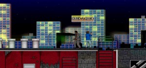 they both ascent to the rooftop. quite a fitting scene for a finale. the bloom from the windows is obviously HD. and every light is an individual animation. it made flash chug quite heavily under the strain.