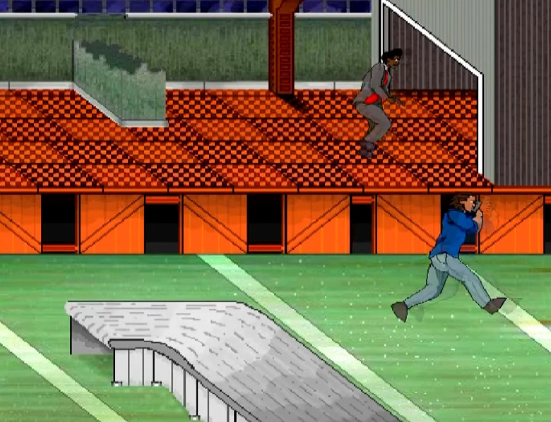 there’s a few moments like this, when the cops are simply making their way right with little happening. but I can’t remove them or the levels would have no context. I suppose it gives the songs a little more running time. some of the original compositions are sadly cut a bit short. i got a fellow student called David Currie to give me some original songs for this.