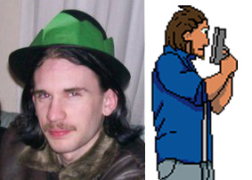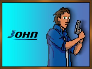 some of the first pixel art for john. i remember having so much trouble thinking of a good color palette for his clothes.