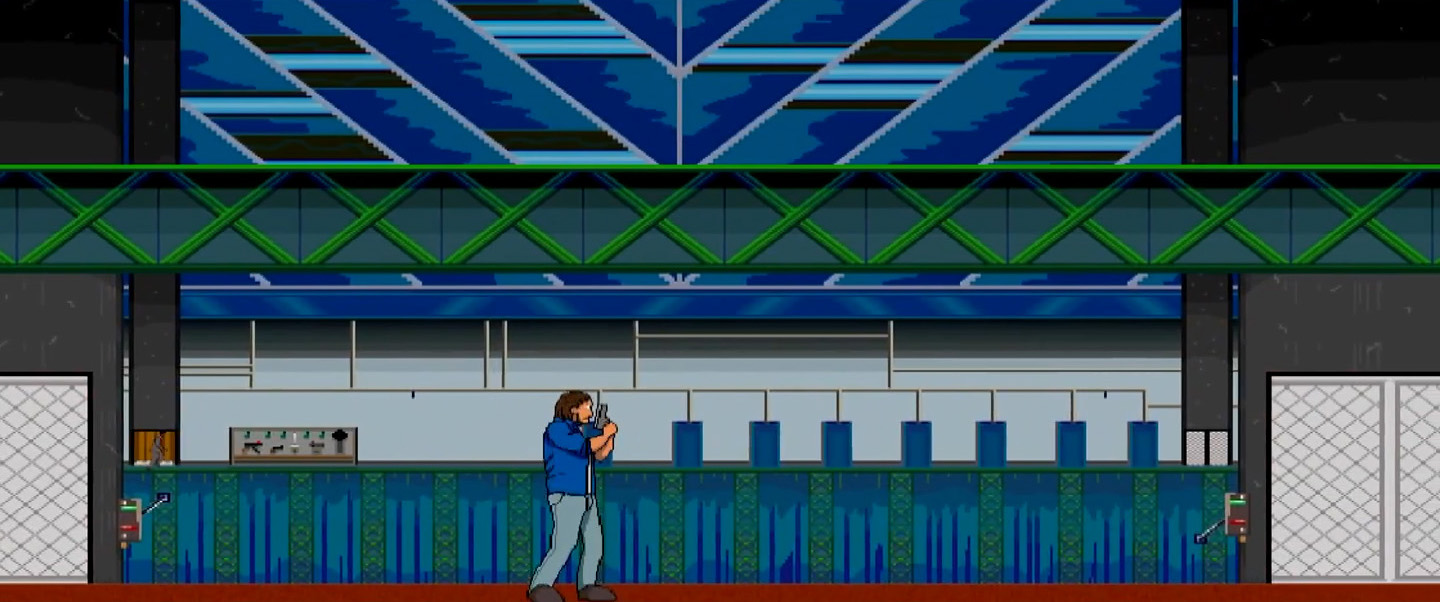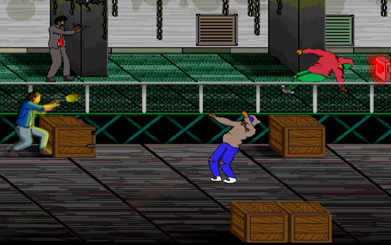 as for enemy a.i. this would evoke the player to get the most out of their environment to gain an advantage in battle. bit.cops has a lot of examples of environmental interaction. the ammo conveyor belt is necessary to defeat the horde. the flame barrels are also needed to defeat inaccessible thugs. there’s plenty of levers, elevators and buttons to mix things up as well.