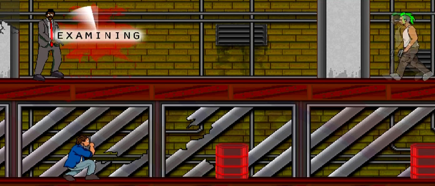 regarding forensic evidence, i had an earlier idea to give them even more relevance aside ammo and points. in my initial design there was going to be a boss character. once the players reach the roof, they would starts a dialogue tree sequence where they can present the gathered evidence to press heat on him, and eventually make him fall off the roof. this being the best possible ending, could only gained with a high score/forensic scan rate. story is always a good incentive for modern players.