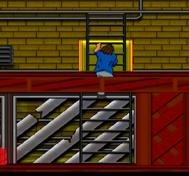john climbs up the ladder, not much to say here. but looking at the pipes and vents made me remember something. I was going to have steam burst out of them from being hit with gunfire, but the gunfights can already be quite chaotic. and HD effects for having a bad aim doesn’t really make sense to me. although smoke and steam is such an incredibly subtle and transparent effect that players might even notice it`s in HD.