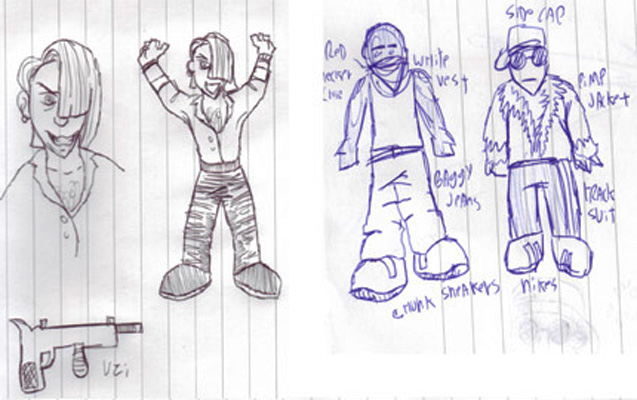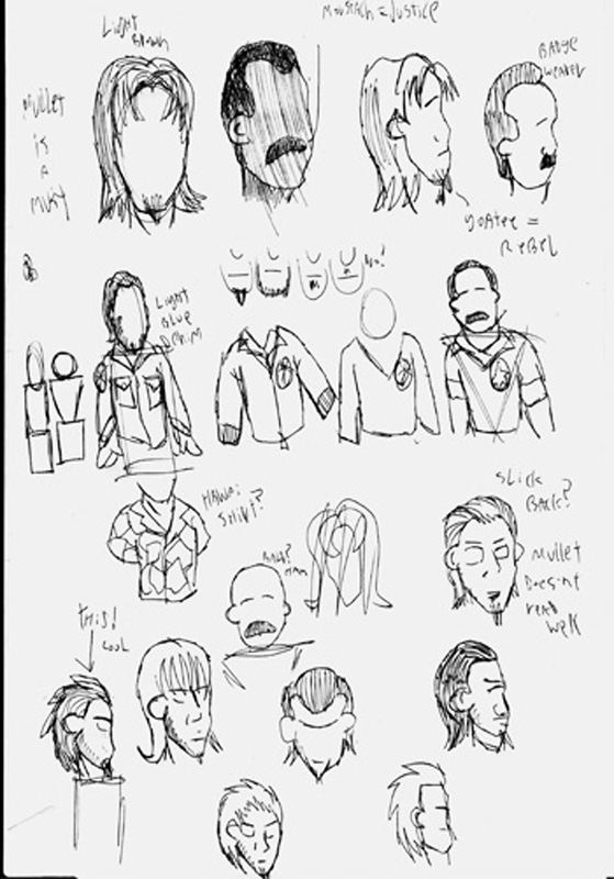 some more bad guy ideas. the blonde guy in the middle was the beginnings of the boss idea.