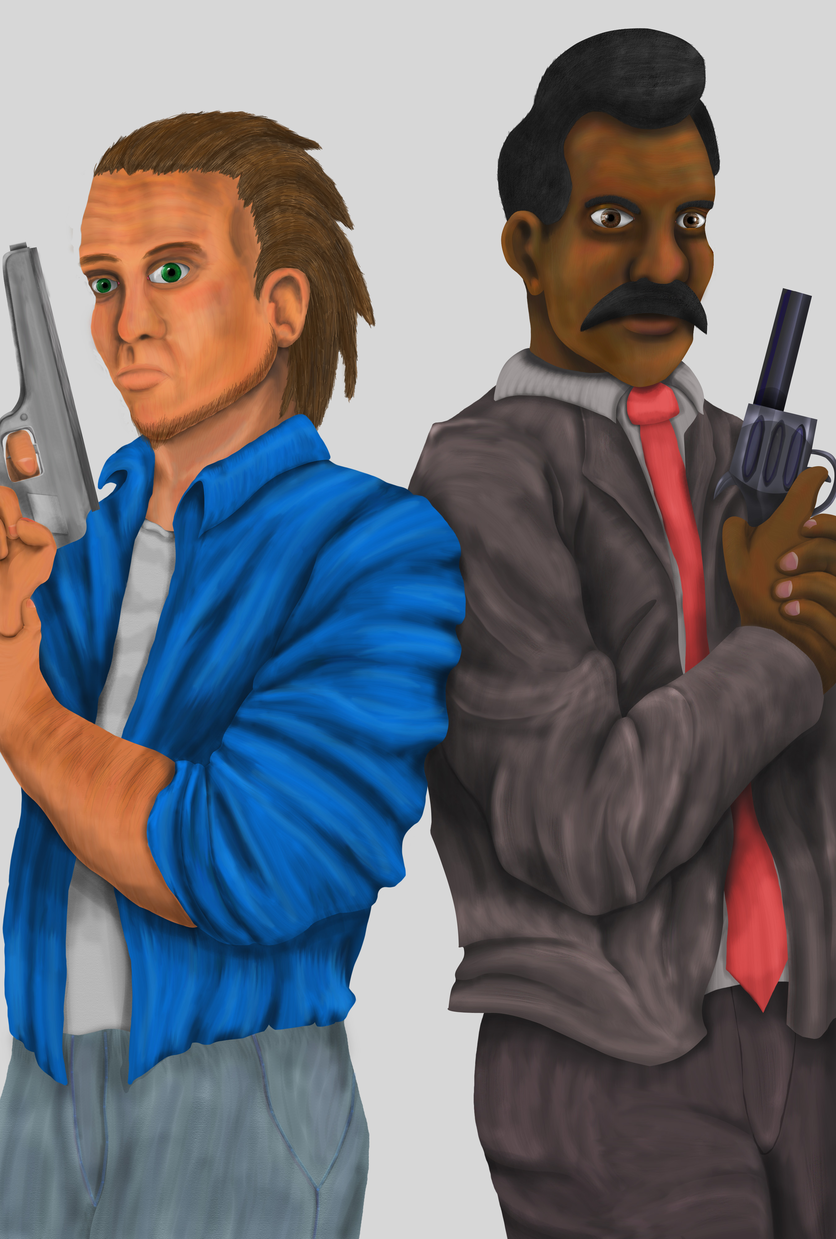 I do like the rotoscoped look, but this cartoony cops are also quite nice. I like the one of the left the best. good colors.