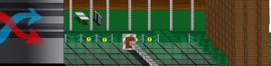out he comes and then they both head right. not much else to say about this room, except I wish I had more like them. playing with perspective like this is slighty modern. since older hardware probably couldn’t scale as sophisticated as adobe  flash can. the sprites stay somewhat legible here. of course, the ambiguity of the sprites is an intentional factor to add into the difficulty. I could have brought the background plane in closer.