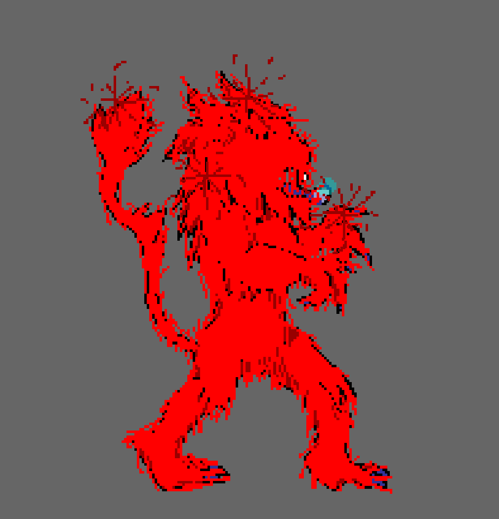 I think the two work really well together because sprite art has always lent itself well to abstractism and ambiguity. two things which accentuate the atmosphere in horror games (see, silent hill`s mushy,faceless monstrosities) here`s a quote from destructoids review of the game saying the same thing