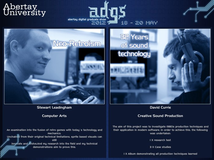 my actual honours project is the study of Neo-Retroism, the merging of the new and the old. the style leering more towards retro 16-bit games, and luckily his honours project was also a nostalgic throwback, he was attempting to recreate the sound of 80`s music using current day technology. not only that, he refused any form of payment because in his own words “I enjoy making music”