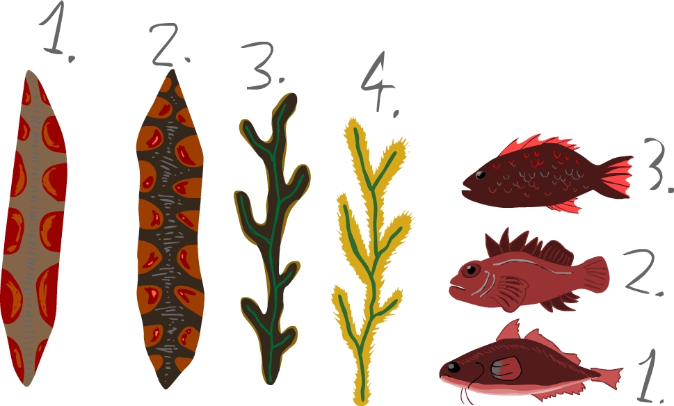and a fish swimming between the seaweed as requested. as I recall, here is the image showing off various designs.