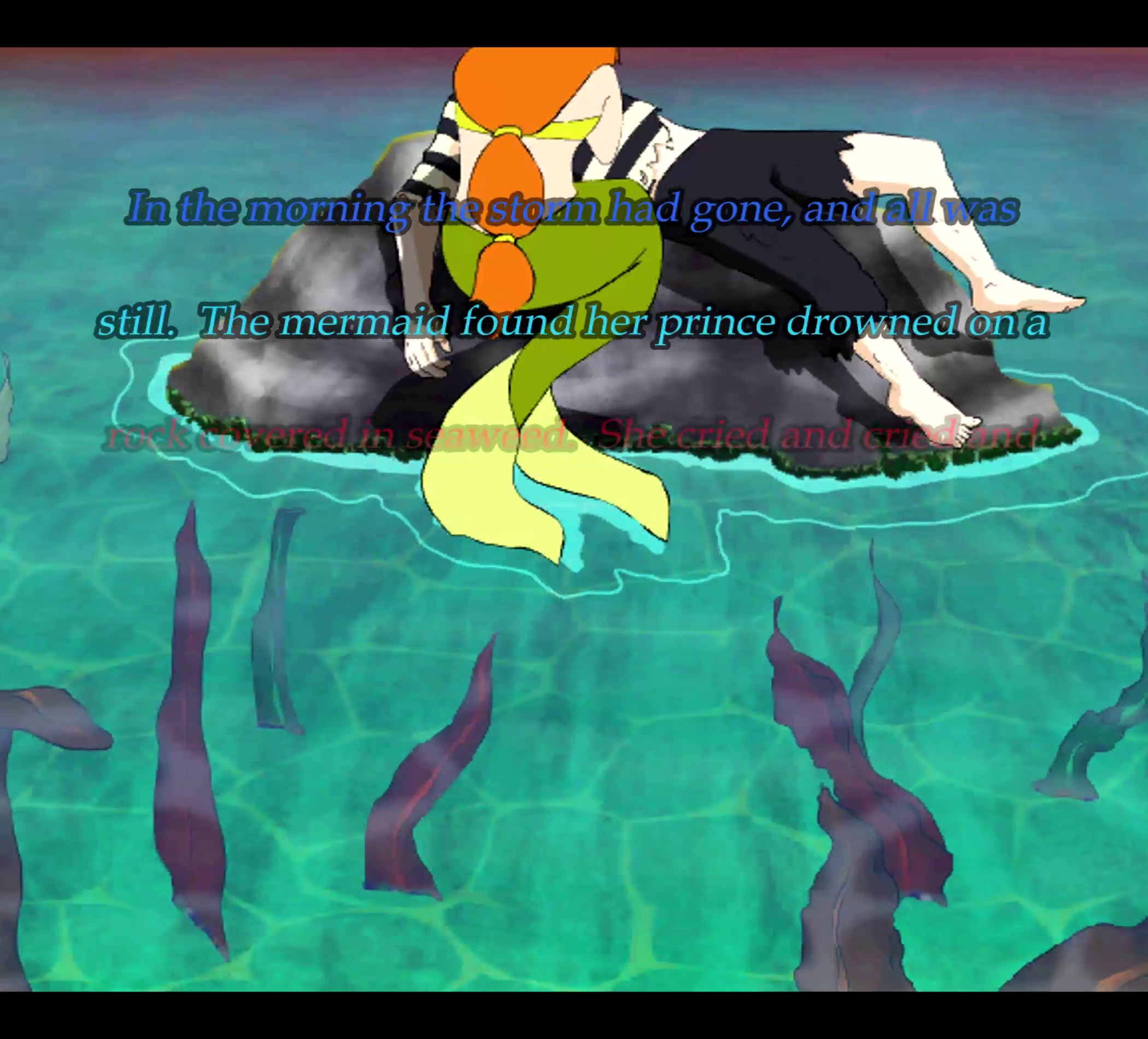 in the first version of the video, I stupidly forgot to visualise the climax of the story. her tears staining the seaweed. thankfully, it wasnt a difficult thing to implement once I got the feedback reminding me.