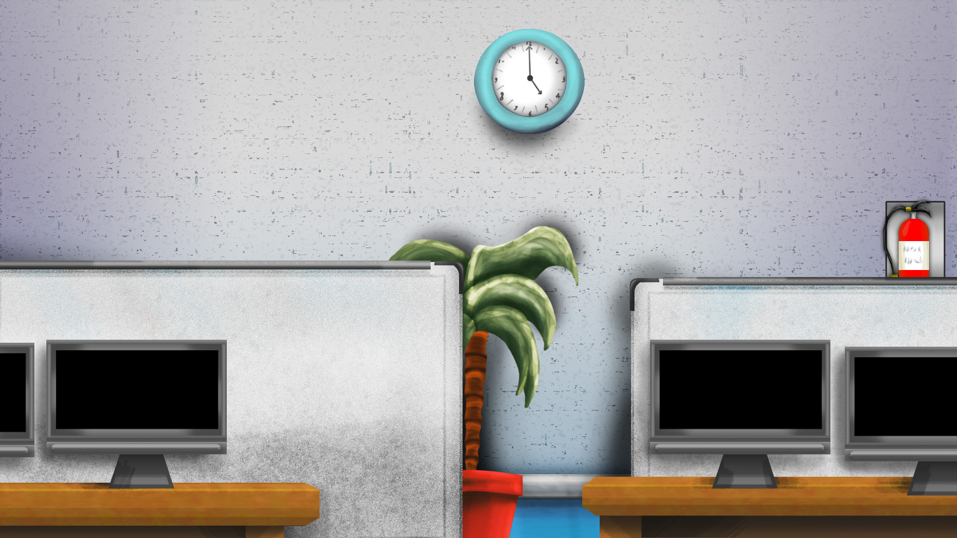 a office, assumedly in a game development studio. most likely the setting for some parody of zynga or ea.