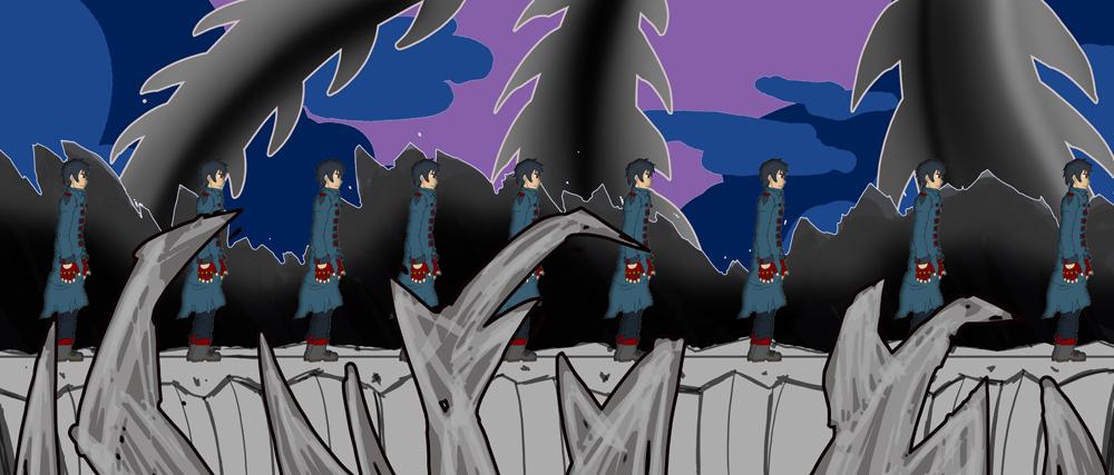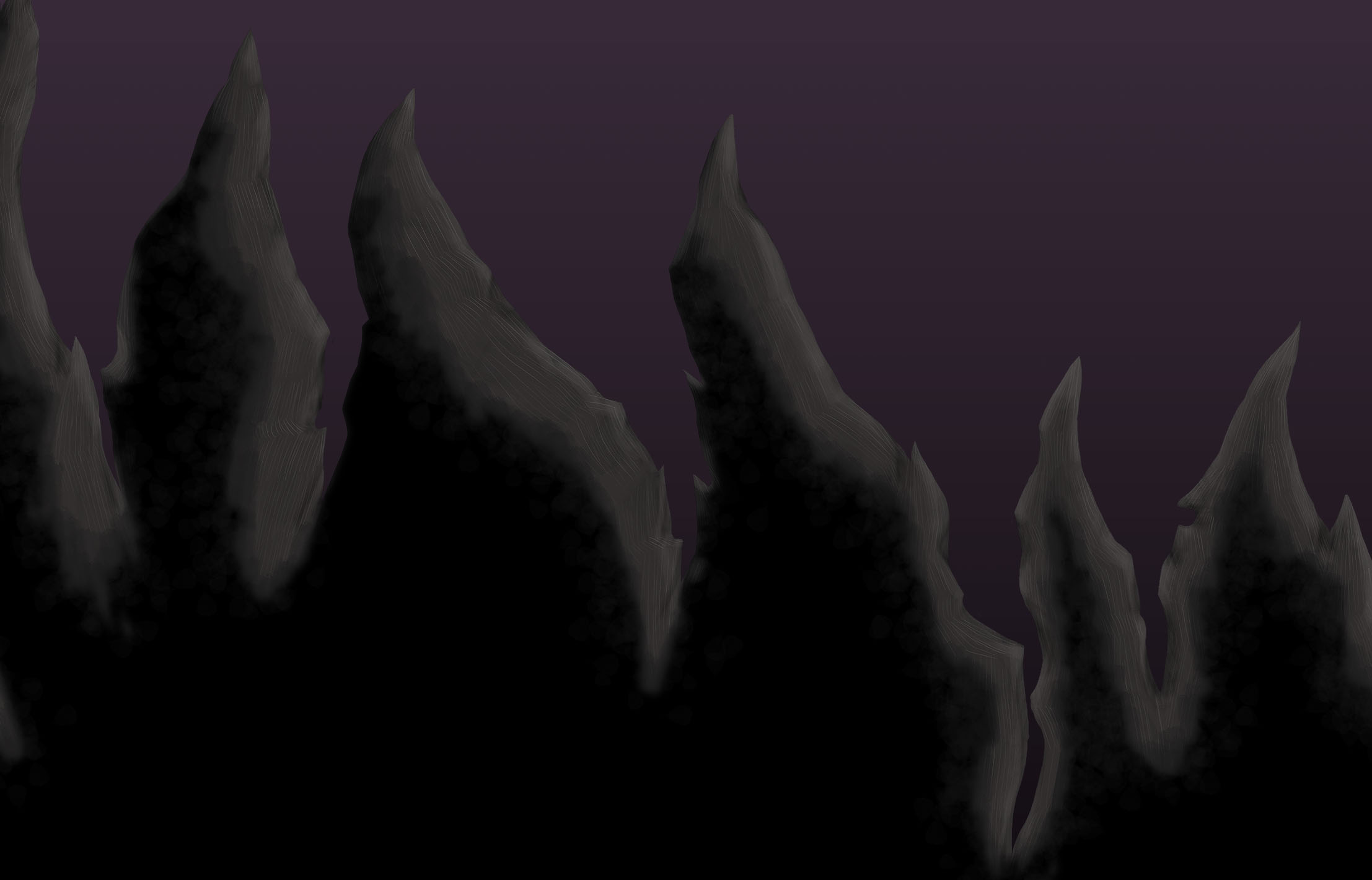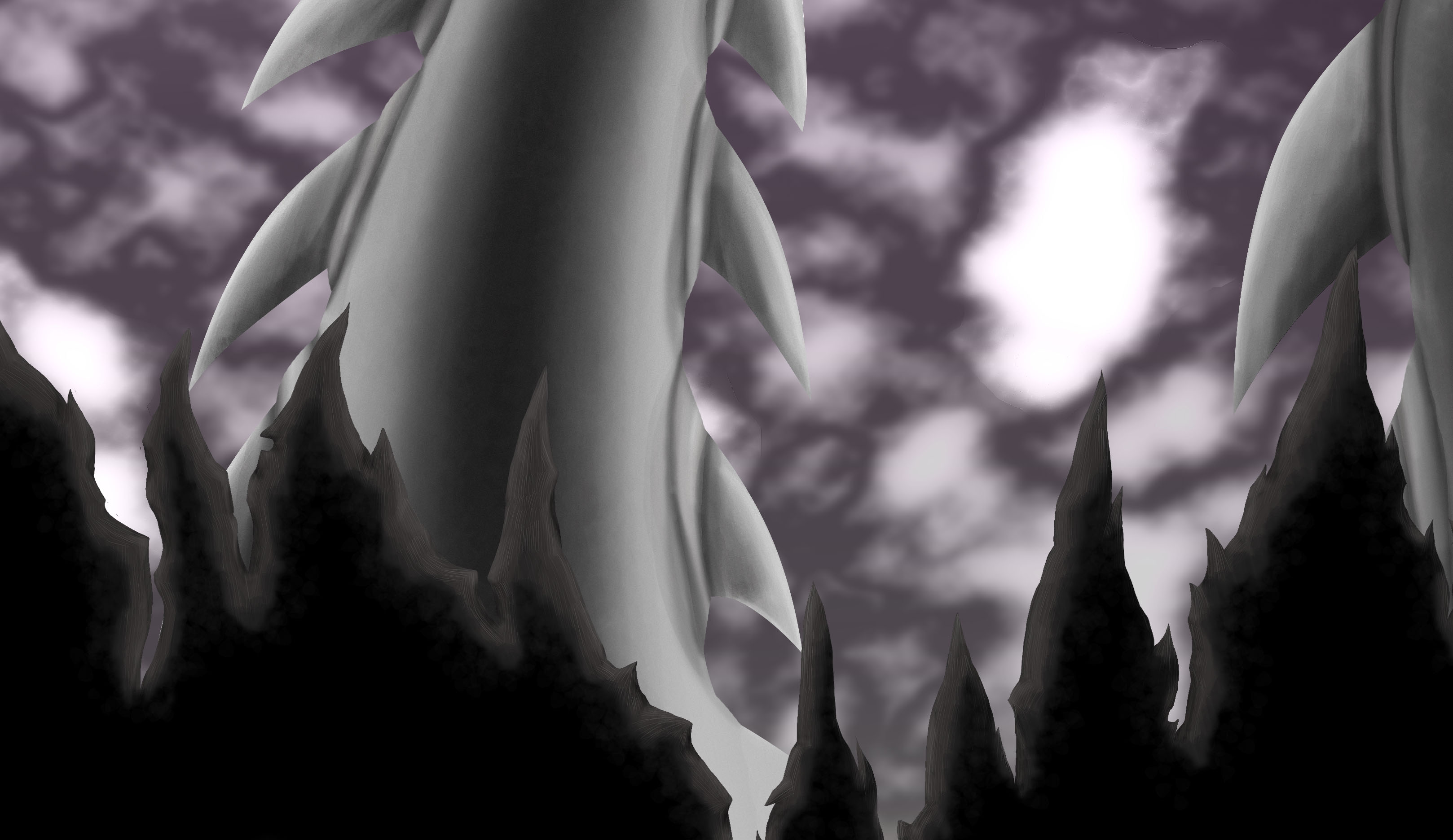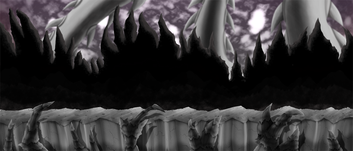 and the furthest background element is the skeletal like spines that reach over the sky. quite happy with how these look. almost likeΒ gigantic monster bones.