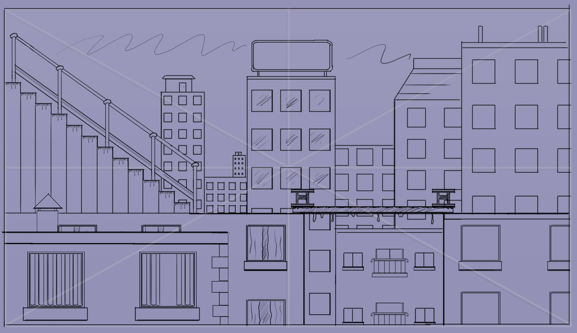 So Mubeen from the design lab commissioned me for environments. black and white city streets, building interiors and rooftops. Here’s the conceptual sketches.