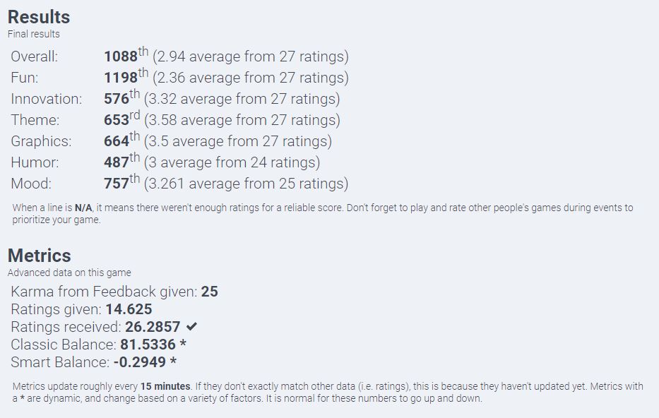 Merry new year randos and acquaintances. First things first, the results from the Ludum Dare 51 Gamejam.
