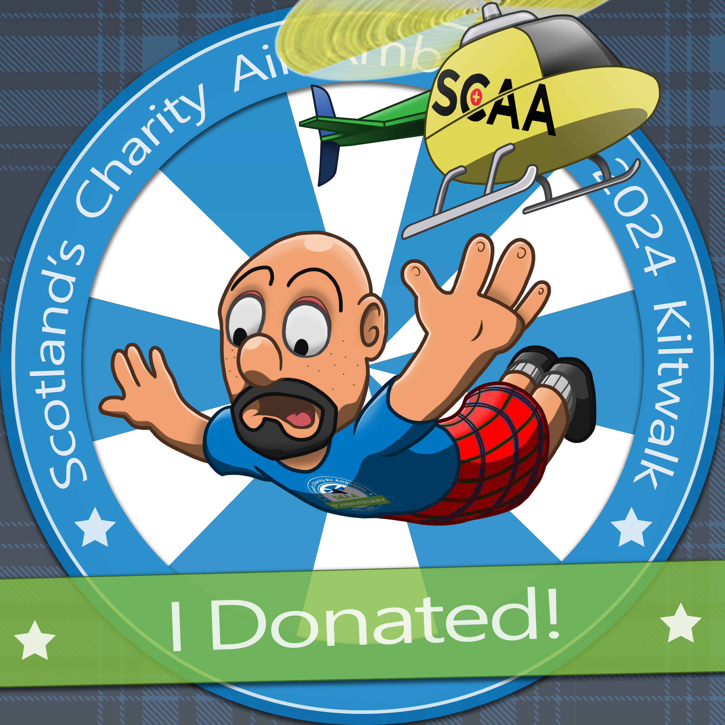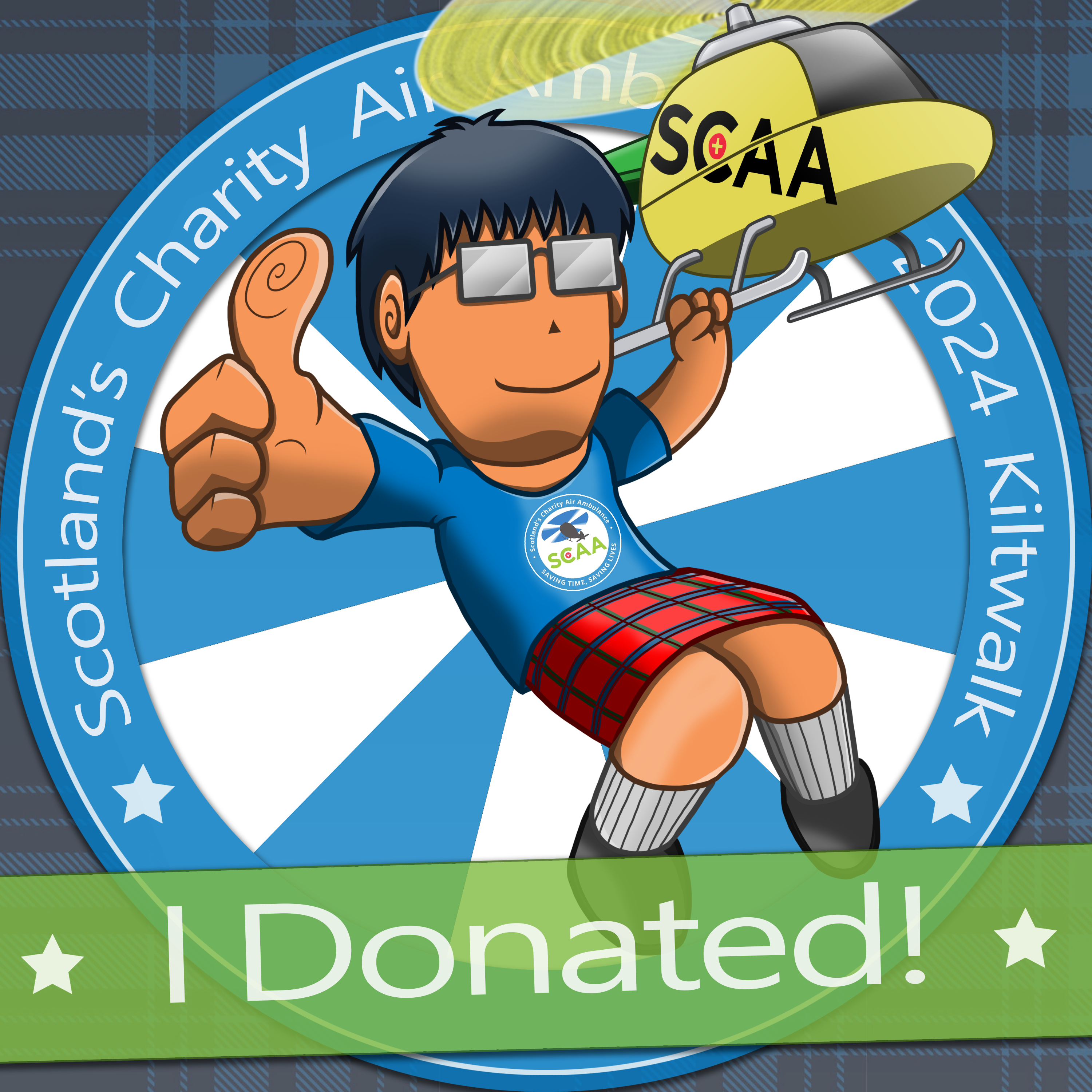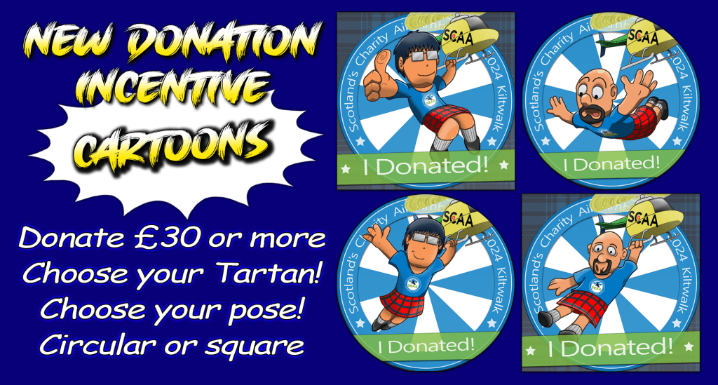 Because it’s two Kiltwalks, it’s been divided into two different JustGiving pages. Eagle eyed gamers will notice the Street Fighter 2 motifs.