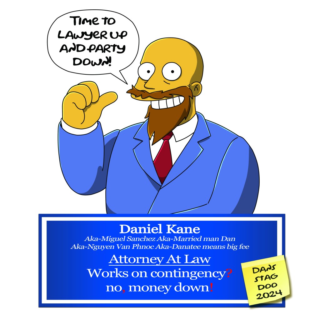 Something of a in-joke but I still wanna post, is a custom made design for a friends stag-doo t-shirt.