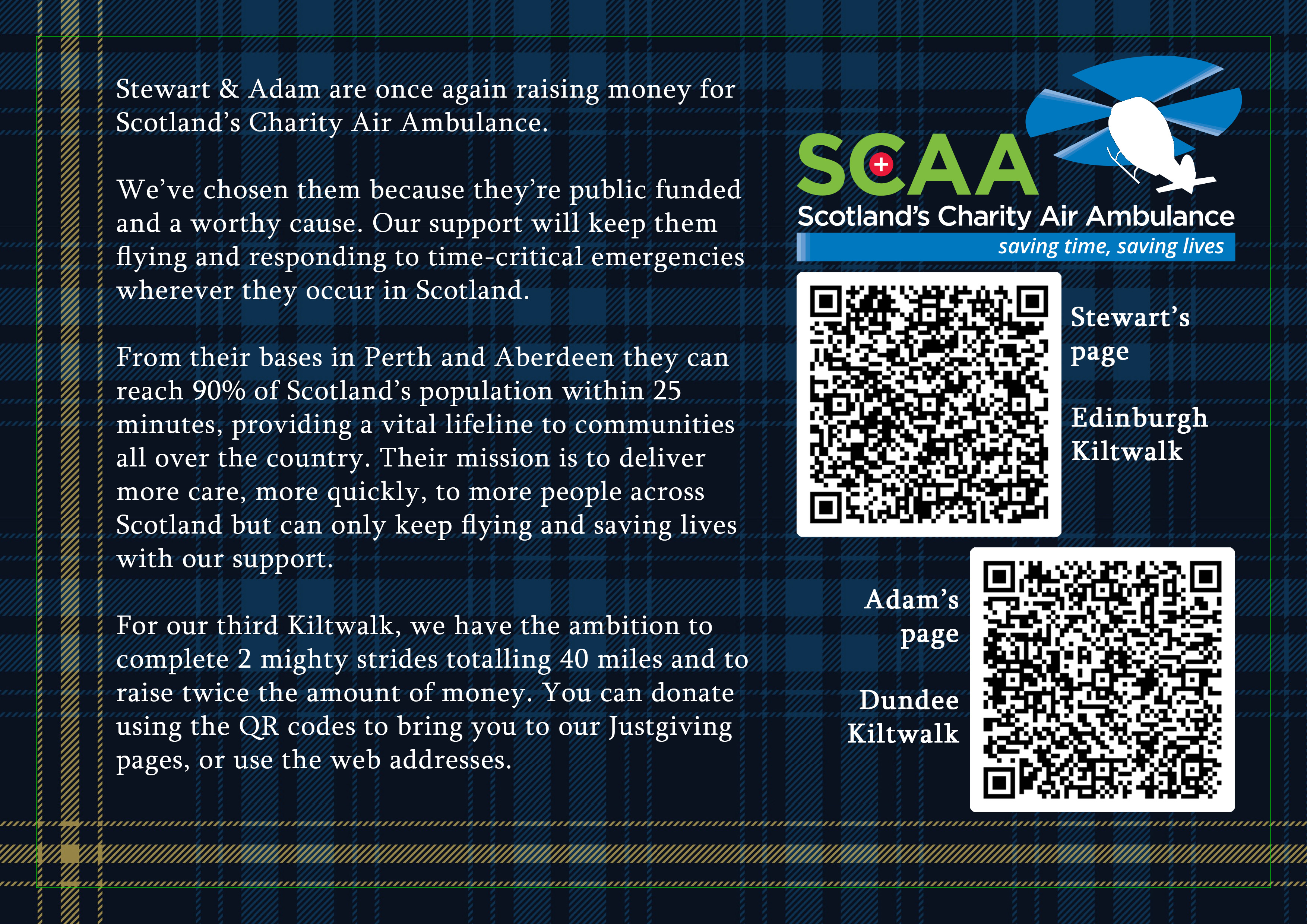 And it being another year also means. Another Kiltwalk! This year me & Adam are substantially ramping up our efforts and attempting to conquer 2 Kiltwalks instead of just 1.