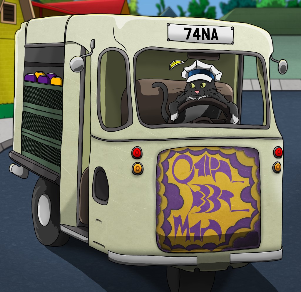 I know the licence plate looks like it might say anal, and that’s a fun coincidence that ties in with the cartoons sense of humour. But it’s actually “Lana” his cats name.