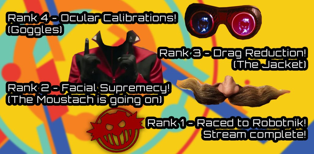 This year I’ve decided to combine two of my favourite past times. Playing videogames and behaving like a gigantic clown. I will be attempting to reach max rank on Sonic Racing Crossworlds with the added caveat of cosplaying on stream as Dr Robotnik.
